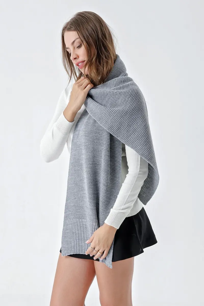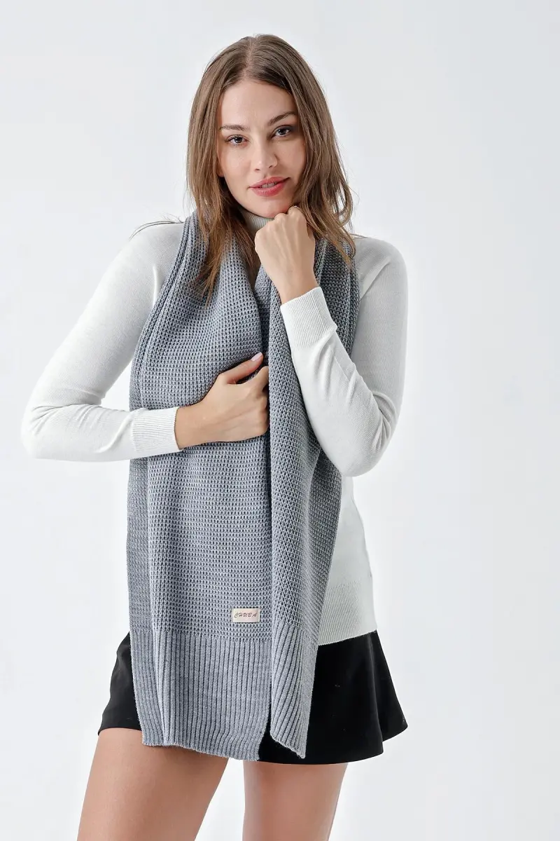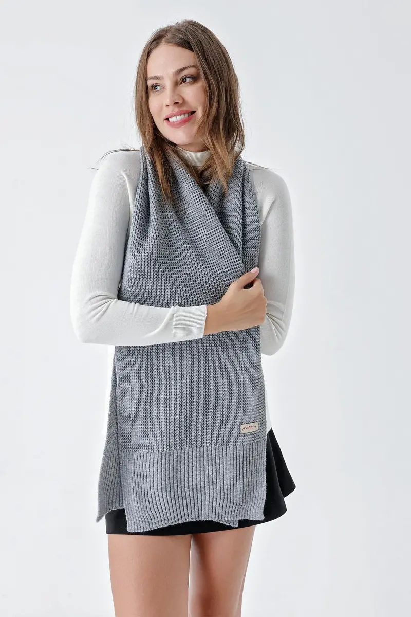Kadın Yumuşak Tuşeli Örgü Detaylı Atkı Gri 24W1321-Gri