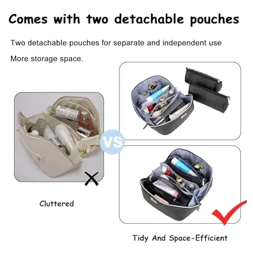 BOYATU Travel Makeup Bags ile seyahatlerinizde ve günlük yaşamınızda makyaj malzemelerinizi düzenli ve şık bir şekilde taşımanın keyfini çıkarın. Bu 3'lü vegan deri makyaj çantası seti, geniş kapasitesi, bölmeli tasarımı ve su geçirmez özelliği ile öne çıkıyor. İster seyahatte olun, ister iş gezisinde, ister tatilde, ister açık havada, bu set makyaj ve kişisel bakım ürünlerinizi organize etmek için ideal bir çözüm sunar. Zarif floral tasarımıyla da dikkat çeken bu çanta seti, size sayısız övgü getirecek. BOYATU taşınabilir makyaj çantası, sizin için harika bir seçim ve ideal bir yol arkadaşıdır. İki adet çıkarılabilir makyaj kesesi sayesinde, cilt bakım ürünlerinizi ve kozmetiklerinizi en iyi şekilde düzenleyebilirsiniz. Geniş kapasitesi sayesinde 230 ml'lik tonik veya daha büyük şişeleri bile rahatlıkla sığdırabilirsiniz. Sadece 0.75 LB ağırlığıyla hafif ve taşınması kolaydır. Makyaj malzemelerinizi ve kişisel bakım ürünlerinizi rahatça taşıyabilir, seyahat tuvalet çantası, preppy makyaj çantası, banyo çantası, kozmetik çantası vb. olarak kullanabilirsiniz. Kirlenmeye ve suya dayanıklı olacak şekilde tasarlanmış bu makyaj seyahat düzenleyici çanta, ister şifonyerinizde, ister banyoda, ister dışarıda, ister arabada veya bavulunuzda olsun, çeşitli ortamlara uygundur. Makyajınızı ve rötuş ihtiyaçlarınızı her zaman, her yerde karşılamak için yanınızda bulundurun. Sevgililer Günü, Anneler Günü, Doğum Günleri, Noel ve daha birçok özel gün için bayanlara harika bir hediye seçeneğidir. Bu makyaj seyahat çantası, özenle tasarlanmış bir tebrik kartıyla birlikte zarif bir hediye kutusunda güzelce paketlenmiştir.
