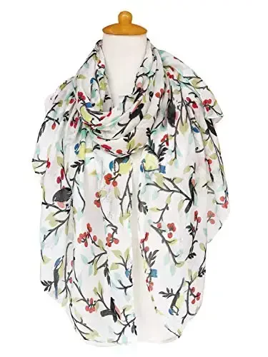 GERINLY Çiçek Kuş Desenli Pamuk Şal: Hafif, Yumuşak, Çok Amaçlı Fular