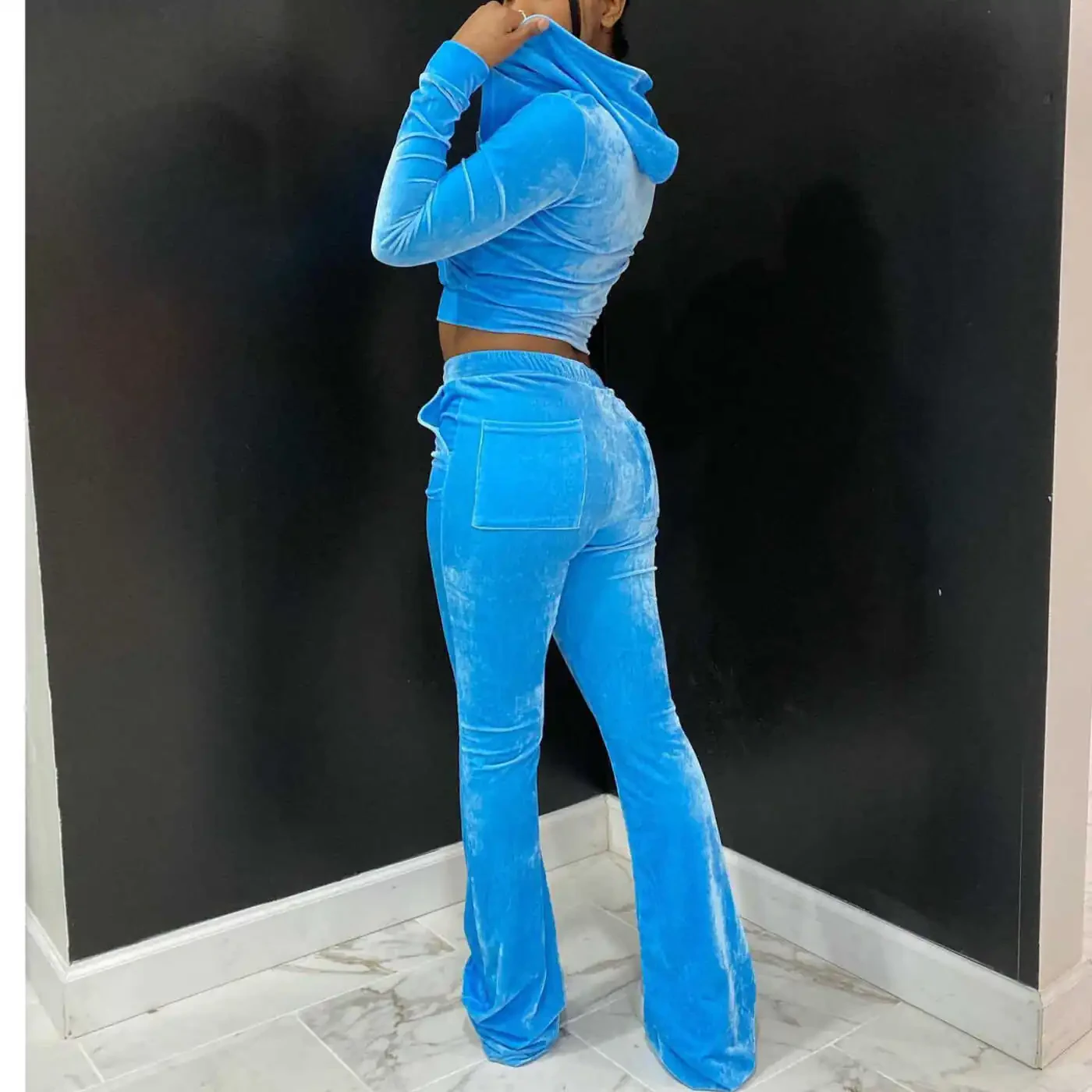 Lovskoo 2 Parça Kadife Eşofman Takımı ile şıklığı ve rahatlığı bir arada yaşayın! Bu göz alıcı gök mavisi renkli takım, kadınların hem spor yaparken hem de günlük aktivitelerinde tarz sahibi olmalarını sağlıyor. Fermuarlı kapüşonlu kadife crop ceket ve İspanyol paça uzun pantolondan oluşan bu set, gardırobunuzun vazgeçilmezi olacak. Yumuşak dokulu kadife kumaşı, gün boyu konfor sunarken, modern kesimi ile de dikkatleri üzerinize çekeceksiniz. İster spor ayakkabılarla rahat bir kombin yapın, ister topuklu ayakkabılarla daha şık bir görünüm elde edin, bu eşofman takımı her ortama uyum sağlayacak. Cepli tasarımı sayesinde pratik kullanım imkanı sunarken, elastik bel detayı ile de vücudunuza tam oturur. Lovskoo kalitesiyle üretilen bu takım, hem rahatlığı hem de şıklığı ön planda tutan kadınlar için ideal bir seçim. Günlük kullanım, spor aktiviteleri, seyahatler veya özel günlerinizde rahatlıkla tercih edebileceğiniz bu eşofman takımı, tarzınızı yansıtmanıza yardımcı olacak. Unutmayın, Lovskoo ile her zaman bir adım öndesiniz! Bu şık ve rahat takımla kendinizi özel hissedin. Kadife dokusunun lüks hissiyatı, modern kesimi ve canlı rengiyle birleşerek size benzersiz bir deneyim sunuyor. İster evde dinlenirken, ister arkadaşlarınızla buluşurken, her zaman şık ve bakımlı görünmenin keyfini çıkarın. Lovskoo 2 Parça Kadife Eşofman Takımı, sadece bir kıyafet değil, aynı zamanda bir yaşam tarzı sunuyor. Tarzınızla fark yaratmak ve konforunuzdan ödün vermeden şık olmak istiyorsanız, bu takımı mutlaka denemelisiniz. Her detayında özen ve kaliteyi hissedebileceğiniz bu takım, gardırobunuzun en sevilen parçası olacak. Şimdi sipariş verin ve Lovskoo farkını yaşayın!