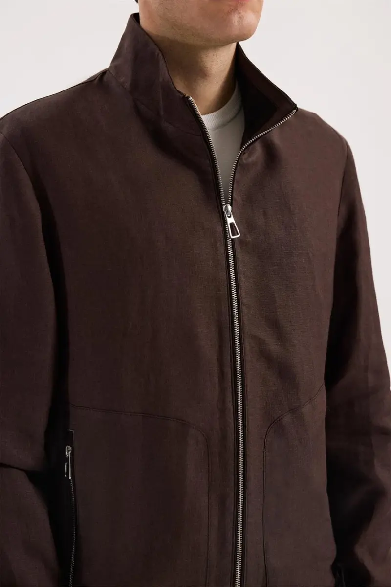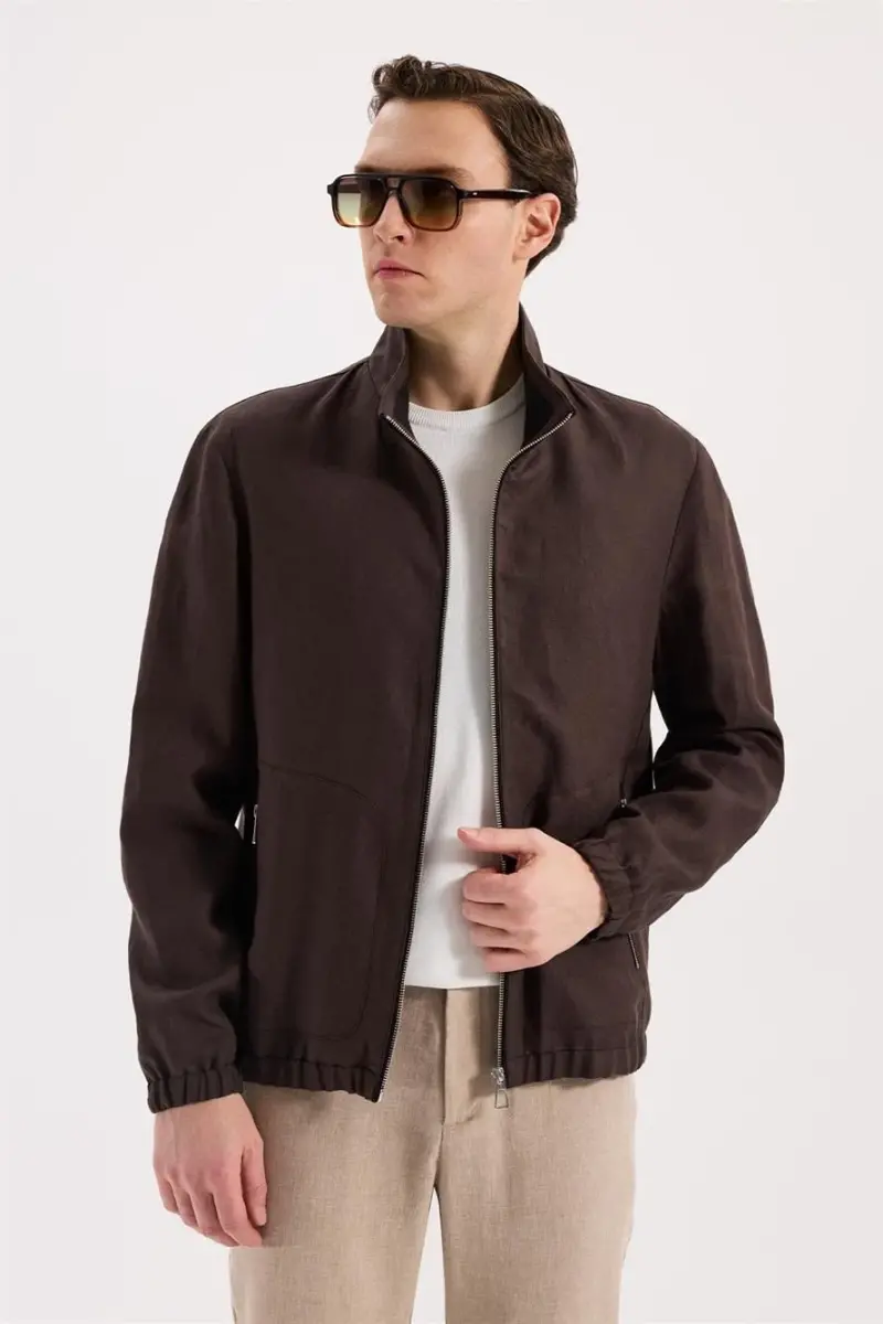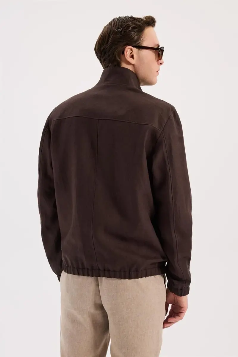 Kahve Comfort Fit %100 Keten Mevsimlik Spor Mont