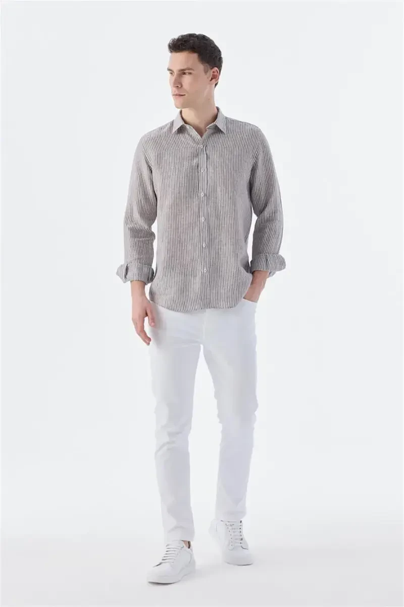 Kahve Comfort Fit Çizgili %100 Keten Gömlek ile sıcak yaz günlerinde bile şıklığınızdan ödün vermeden rahatlığın keyfini çıkarın. Bu gömlek, %100 keten kumaşı sayesinde gün boyu nefes alabilir bir yapı sunar ve terlemeyi minimuma indirerek cildinizin ferah kalmasına yardımcı olur. Comfort fit kesimi, vücudunuzu sıkmadan üzerinize oturur ve hareket özgürlüğünüzü kısıtlamaz. Gömleğin kahve rengi ve zarif çizgili deseni, hem klasik hem de modern tarzlara kolayca uyum sağlar. İster günlük kullanımda ister özel bir etkinlikte giyin, her ortamda stilinizi yansıtmanızı sağlar.Bu gömlek, sadece rahatlığı ve şıklığı bir araya getirmekle kalmaz, aynı zamanda dayanıklılığıyla da öne çıkar. Keten kumaşın doğal yapısı, uzun ömürlü bir kullanım sunar. Kaliteli dikişleri ve özenli işçiliği sayesinde, uzun yıllar boyunca gardırobunuzun vazgeçilmez bir parçası olacaktır. Gömleğin bakımı da oldukça kolaydır. Elde ya da makinede yıkanabilir ve ütülenerek ilk günkü görünümünü koruyabilirsiniz.Kahve Comfort Fit Çizgili %100 Keten Gömlek, farklı beden seçenekleri ile her vücut tipine uygun bir alternatif sunar. Beden kılavuzunu inceleyerek size en uygun bedeni kolayca bulabilirsiniz. Mankenin üzerindeki M beden, ürünün rahat kesimini ve üzerindeki duruşunu daha iyi anlamanıza yardımcı olacaktır. Bu gömlek, sadece bir giysi değil, aynı zamanda bir yaşam tarzıdır. Sıcak yaz günlerinde serin ve şık kalmak isteyen erkekler için ideal bir seçimdir. Dolabınızda mutlaka bulunması gereken bu gömlek ile her zaman stil sahibi ve rahat olacaksınız. Kahve renginin sıcaklığı ve keten kumaşın doğal dokusu bir araya gelerek, size benzersiz bir deneyim sunar. Günlük kombinlerinizde jeanlerle ya da şortlarla rahatlıkla kullanabileceğiniz gibi, daha şık bir görünüm için kumaş pantolonlarla da kombinleyebilirsiniz.