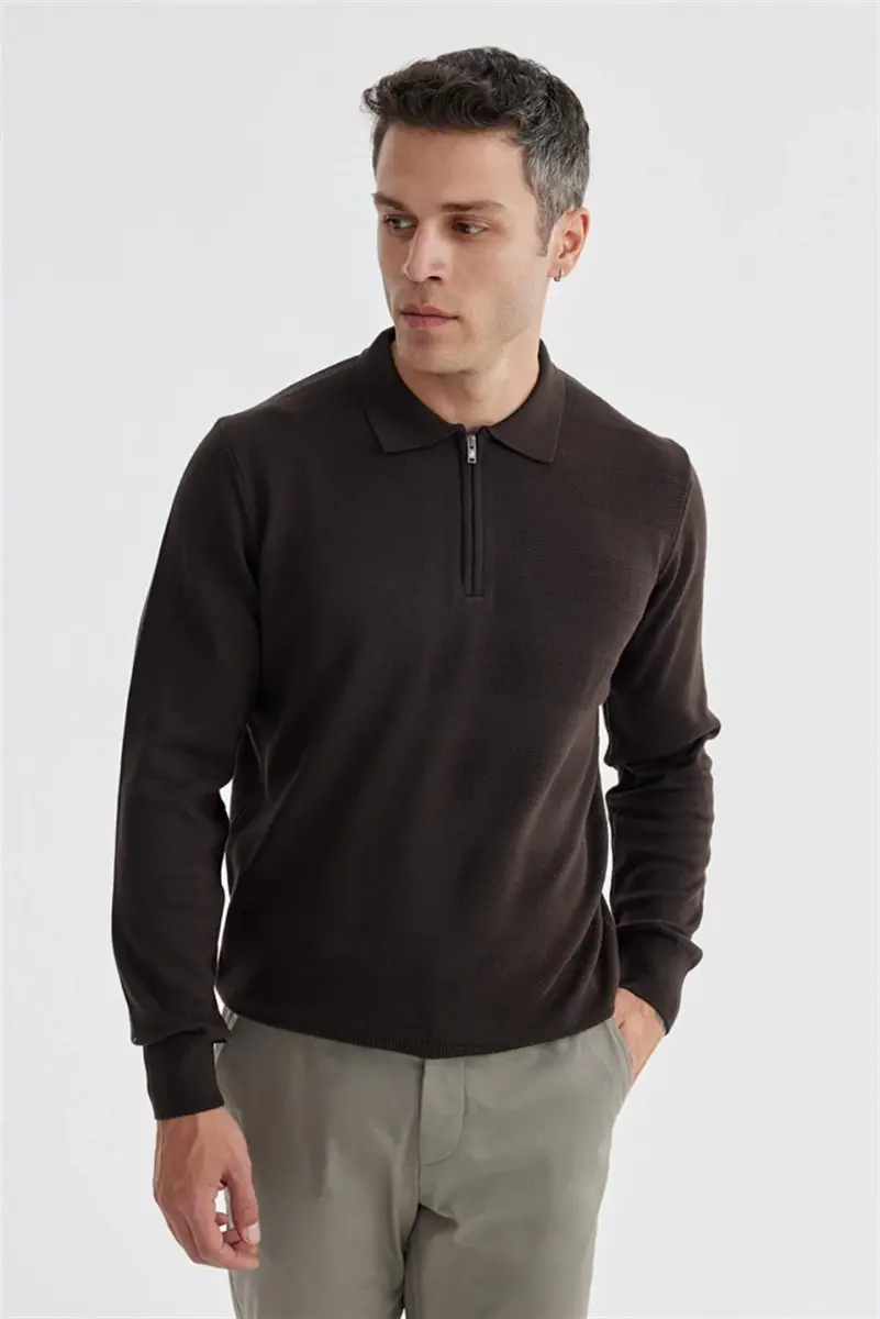 Kahve Slim Fit Pamuklu Desenli Fermuarlı Polo Yaka Triko Kazak ile gardırobunuza sofistike bir dokunuş ekleyin. Bu özel tasarım kazak, modern erkeğin stil sahibi ve rahat seçimler yapma arzusunu mükemmel bir şekilde karşılıyor. Yüksek kaliteli pamuk ipliğinden üretilmiş olan bu kazak, teninize yumuşak bir dokunuş sunarak gün boyu konforlu bir kullanım deneyimi yaşatır. Slim fit kesimi, vücudunuzun hatlarını zarifçe ortaya çıkarırken, aynı zamanda hareket özgürlüğünüzü kısıtlamaz. Bu sayede hem şık görünür hem de rahat hissedersiniz.Kazanın en dikkat çekici özelliklerinden biri, üzerindeki özel desenli örgü detaylarıdır. Bu desenler, kazaka sıradanlıktan uzak, özgün ve modern bir hava katar. Her bir detay, özenle işlenmiş olup, kazanın genel estetiğine zenginlik katmaktadır. Polo yaka tasarımı, klasik bir şıklık sunarken, fermuar detayı ise kazaka modern ve sportif bir dokunuş ekler. Fermuarı isteğinize göre açıp kapatarak farklı stiller yaratabilirsiniz.Kahve rengi, bu kazaka sıcak ve doğal bir görünüm kazandırır. Kahve tonu, farklı renklerle kolayca kombinlenebilir olması sayesinde gardırobunuzdaki diğer parçalarla uyum sağlar. Jeanler, chino pantolonlar veya kumaş pantolonlarla rahatlıkla kombinleyebilir, farklı tarzlara uygun görünümler elde edebilirsiniz. İş hayatında, özel davetlerde veya günlük kullanımda tercih edebileceğiniz çok yönlü bir parçadır.Bu kazak, sadece şık bir görünüm sunmakla kalmaz, aynı zamanda dayanıklı ve uzun ömürlü bir kullanım da vadeder. Kaliteli malzeme ve işçilik sayesinde uzun yıllar boyunca gardırobunuzun vazgeçilmez bir parçası olacaktır. Bakımı da oldukça kolaydır; etiket üzerindeki talimatlara uyarak kolayca temizleyebilir ve ilk günkü görünümünü koruyabilirsiniz.Kahve Slim Fit Pamuklu Desenli Fermuarlı Polo Yaka Triko Kazak, tarz sahibi erkeklerin vazgeçilmezi olacak. Hem şıklığı hem de konforu bir arada arayanlar için ideal bir seçimdir. Kendinizi özel hissetmek ve her ortamda dikkat çekmek için bu kazak tam size göre. Şimdi sipariş verin ve gardırobunuzu bu özel tasarım ile zenginleştirin.