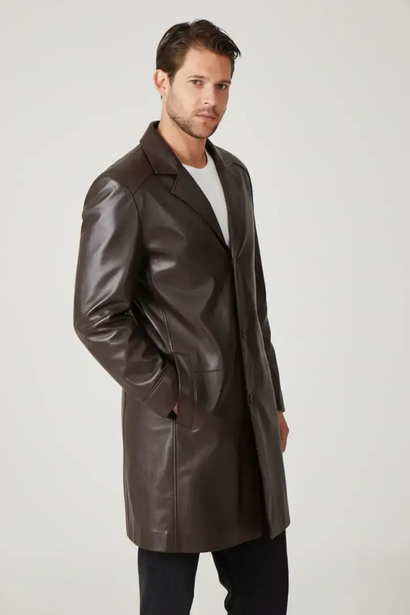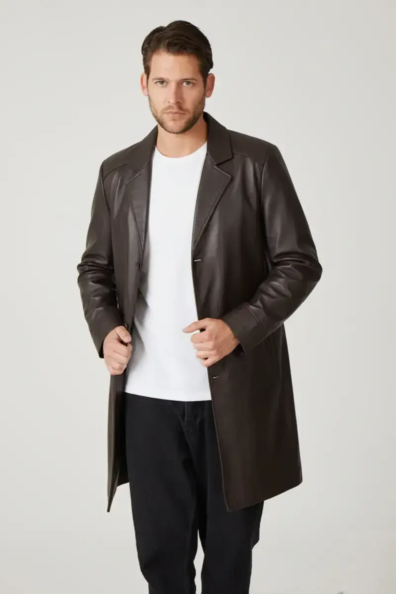 Kahve Tarkan Düğmeli Astarlı Trençkot Erkek Hakiki Deri Kaban - KAHVE, uzun yıllar boyunca ilk günkü gibi kalitesini koruyacak şekilde üretilmiştir. Hakiki derinin dayanıklılığı sayesinde, mevsim geçişlerinde ve farklı hava koşullarında rahatlıkla kullanılabilir. Gardırobunuzun en değerli parçası olacak bu trençkot, size sadece şıklık değil, aynı zamanda özgüven de katacak. Her detayında titizlikle işlenmiş bu trençkot, tarzını önemseyen erkekler için mükemmel bir seçimdir.