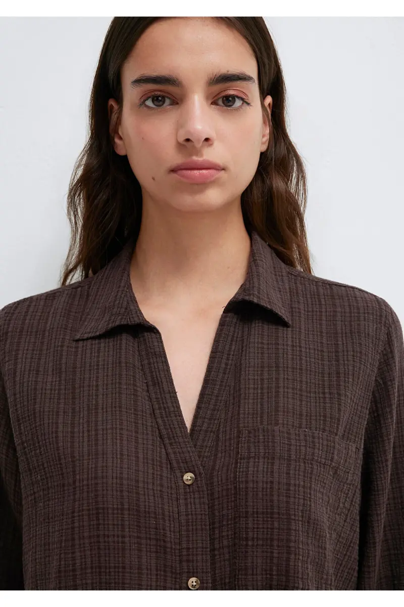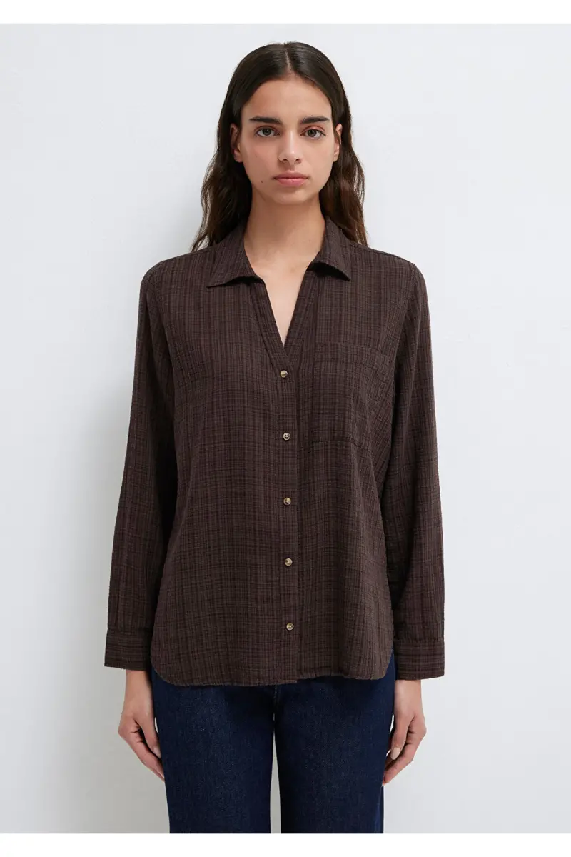 Kahverengi Gömlek Loose Fit / Bol Rahat Kesim 1211114-70236-Kahverengi
