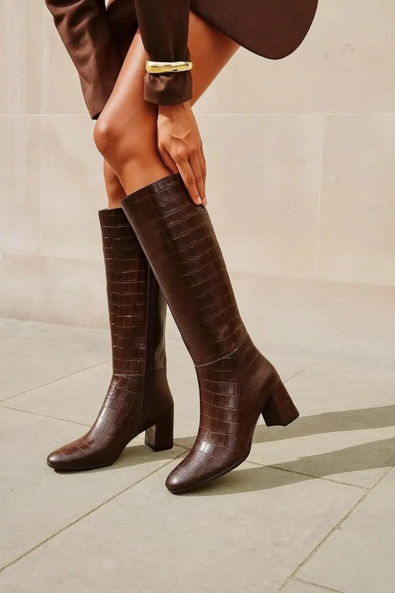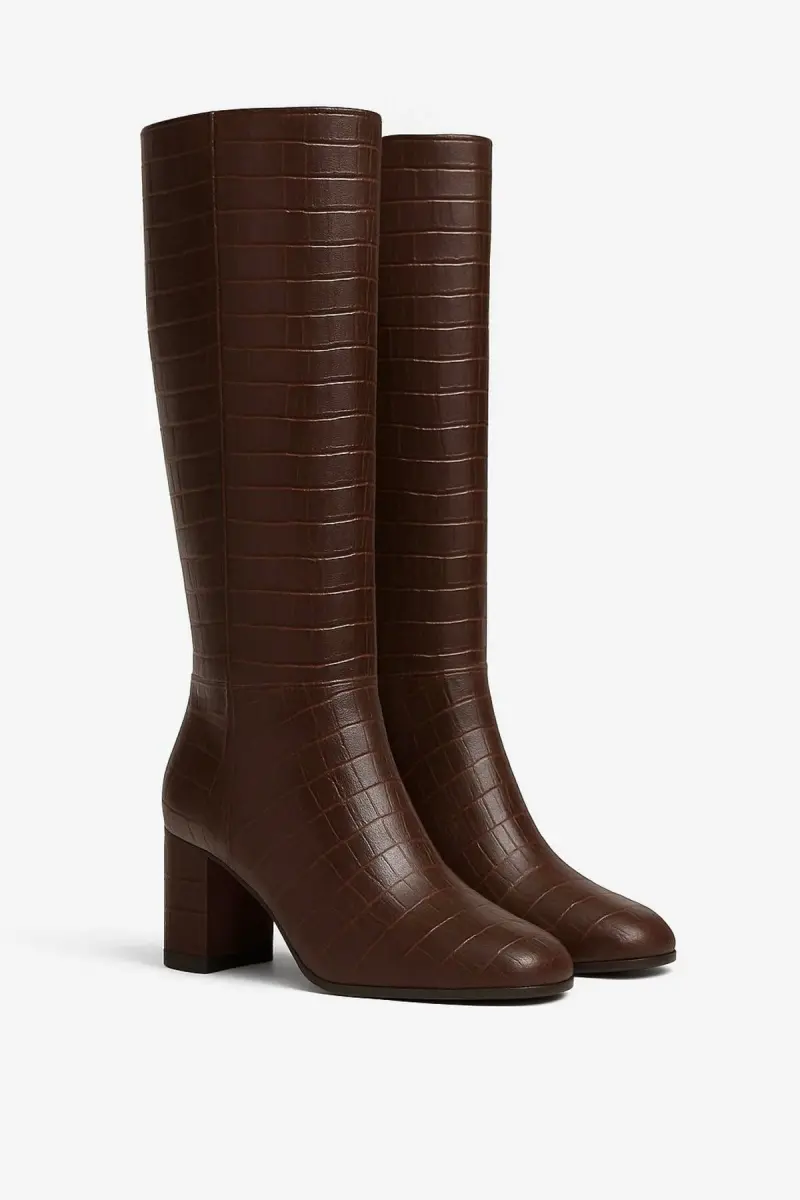 Kahverengi Kroko Kadın Çizme-Kahverengi Kroko