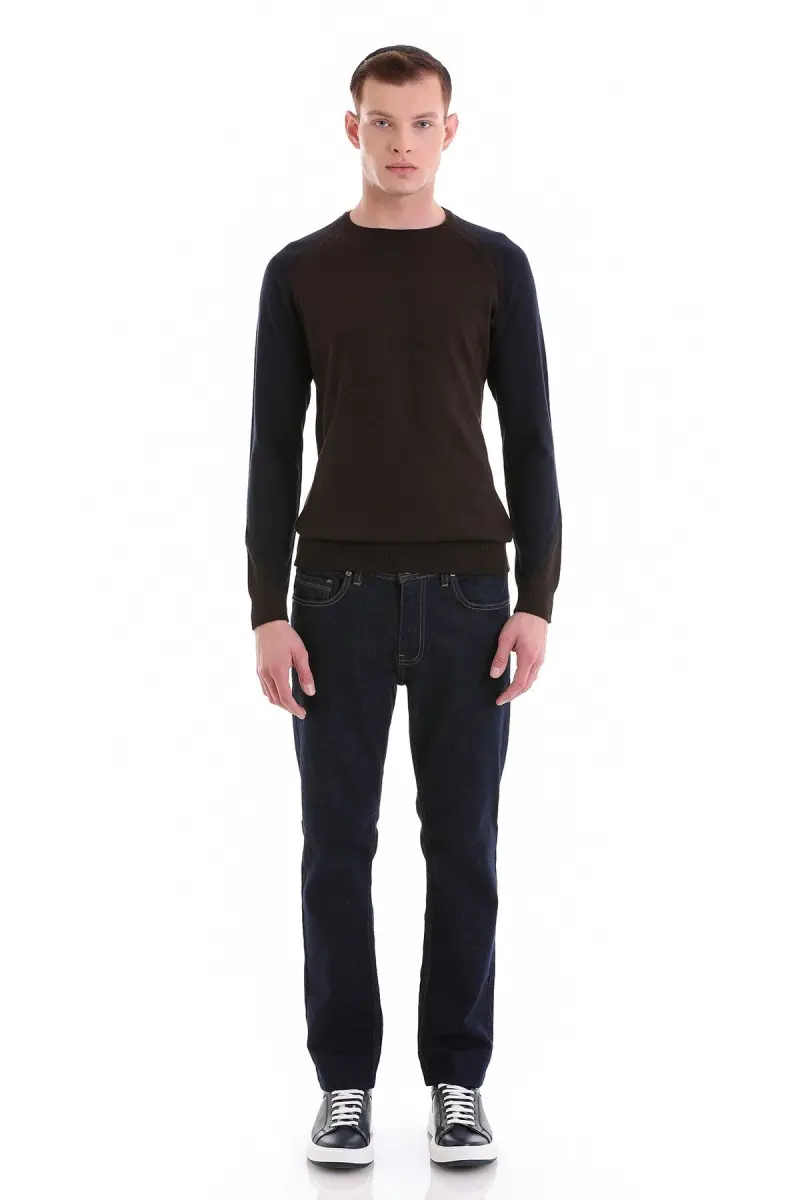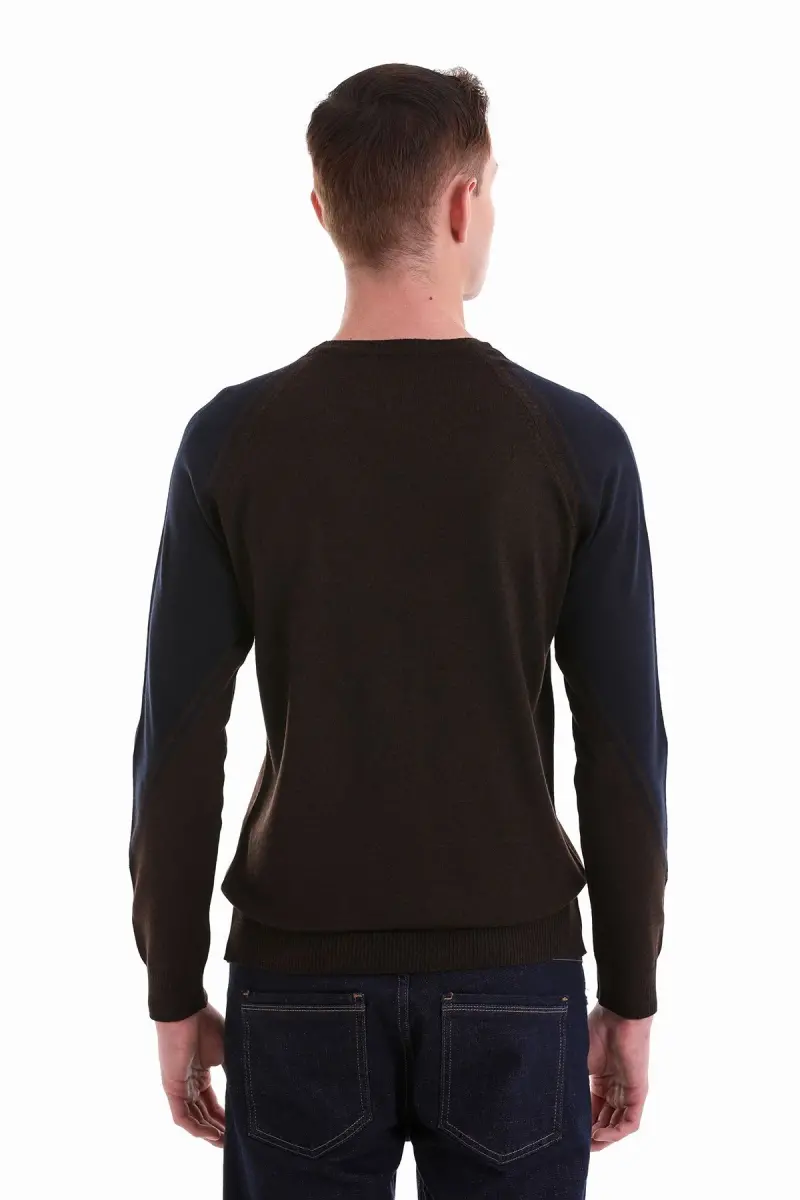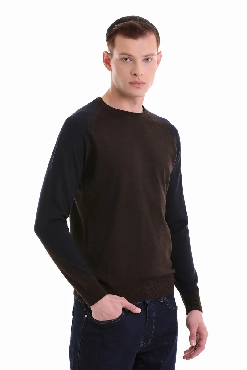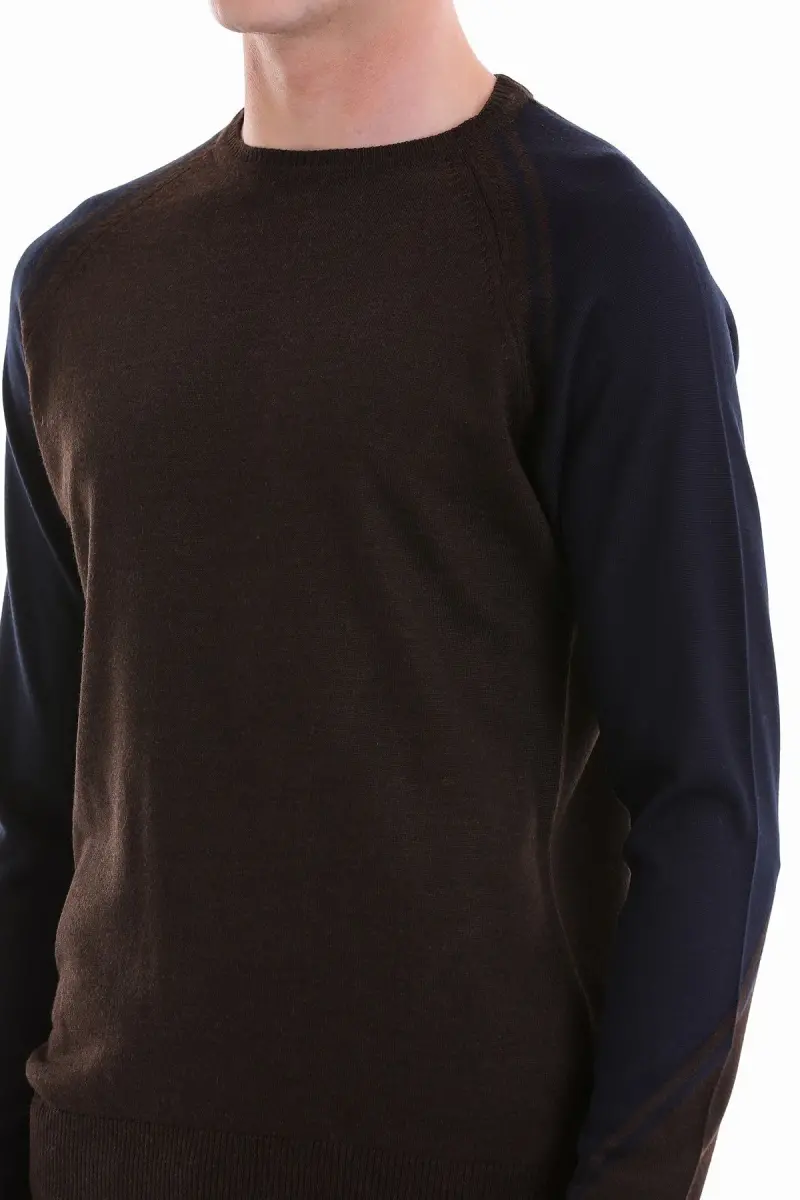 Kahverengi Regular Fit Jakarlı Bisiklet Yaka Yünlü Triko Kazak-Kahverengi
