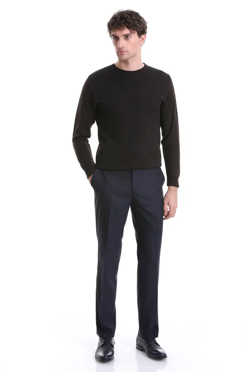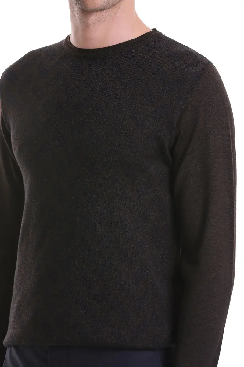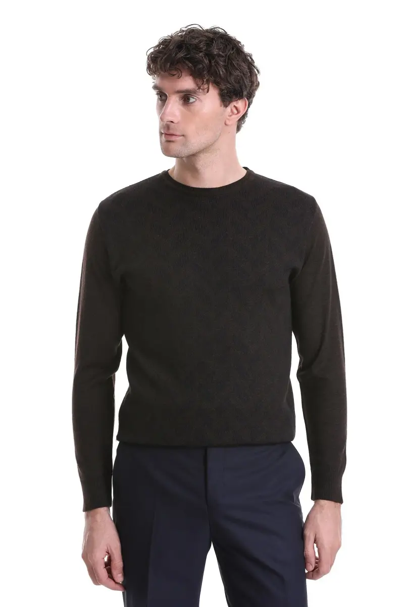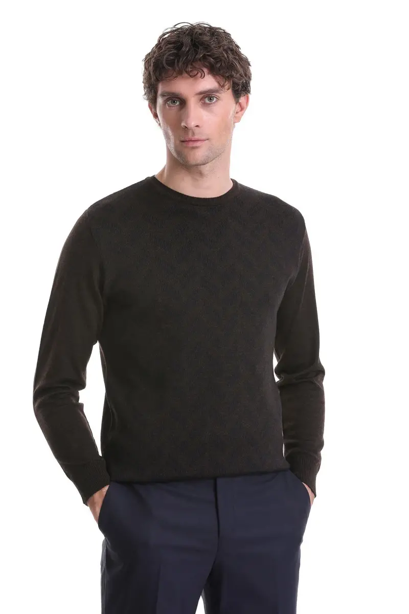 Kahverengi Regular Fit Jakarlı Bisiklet Yaka Yünlü Triko Kazak-Kahverengi