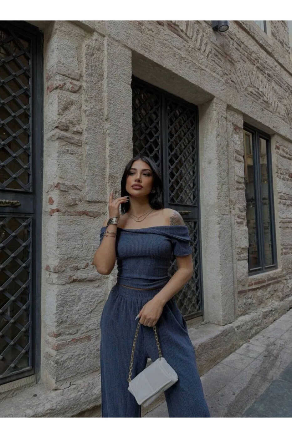 Комплект блузки с вырезом «лодочка» и брюк с драпировкой - ИНДИГО - это предмет одежды, который сочетает в себе элегантность и комфорт и обязательно должен быть в гардеробе современной женщины. Благородный вид цвета индиго придает дизайну комплекта особую атмосферу, а сочетание блузки с вырезом «лодочка» и брюк удобного кроя обеспечивает комфорт в течение всего дня. Этот специальный дизайн выделит вас как в повседневной жизни, так и в особые моменты. Вырез «лодочка» на блузке создает элегантный вид, мягко подчеркивая ваши плечи. Драпировка придает блузке живую и динамичную структуру. Эта деталь также идеально дополняет ваши формы. Удобный крой брюк позволяет свободно двигаться в течение всего дня. Эластичная резинка на талии обеспечивает плотное прилегание брюк к телу, гарантируя, что вам не придется жертвовать комфортом. Цвет индиго подчеркивает элегантность и изысканность комплекта. Этот цвет легко сочетается с различными аксессуарами и обувью, позволяя создавать разные стили. Создайте ли вы повседневный образ со спортивной обувью или более элегантный образ с туфлями на каблуках, комплект блузки с вырезом «лодочка» и брюк с драпировкой - ИНДИГО всегда поможет вам отразить свой стиль. Этот комплект изготовлен из высококачественной ткани. Мягкая текстура ткани нежно соприкасается с вашей кожей и обеспечивает комфорт в течение всего дня. В то же время дышащая структура ткани предотвращает потоотделение и позволяет вам оставаться свежей в течение всего дня. Швы комплекта выполнены с особой тщательностью, что гарантирует долгий срок службы изделия. Комплект блузки с вырезом «лодочка» и брюк с драпировкой - ИНДИГО не только предлагает стильный вид, но и практичен в использовании. Комплект прост в уходе и легко гладится. Эти особенности являются большим преимуществом для женщин с напряженным образом жизни. Этот комплект предлагается в различных размерах. Таким образом, можно найти вариант, подходящий для любого типа фигуры. Вы можете легко выбрать наиболее подходящий вам размер, посмотрев таблицу размеров продукта. Комплект блузки с вырезом «лодочка» и брюк с драпировкой - ИНДИГО - это уникальный продукт, сочетающий в себе элегантность, комфорт и качество. Этот комплект станет незаменимой вещью в вашем гардеробе и всегда поможет вам отразить свой стиль.