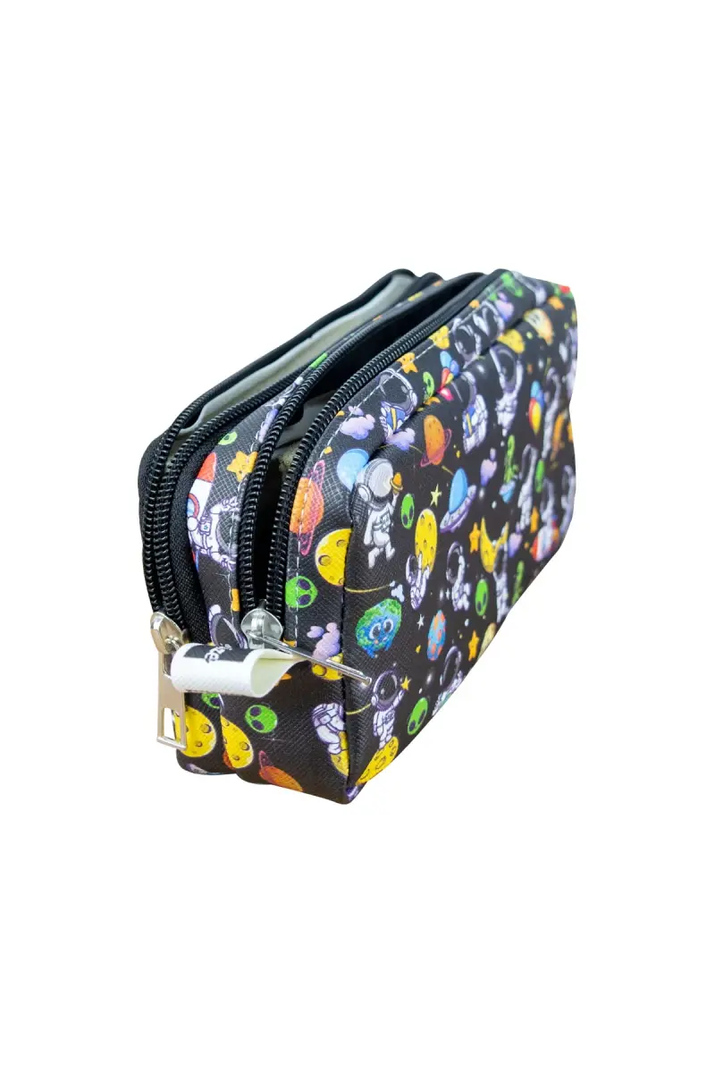 Astronot Vegan Deri Kalem Kutusu 2 Bölmeli | Çift Gözlü Kalemlik
