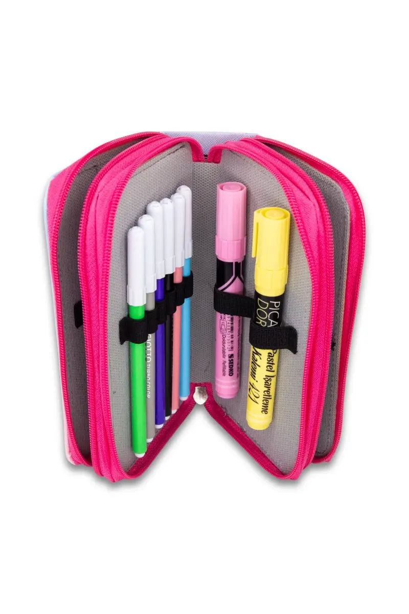 Kalem Kutusu Summer Flamingo Üç Bölmeli Vegan Deri-Summer Flamingo