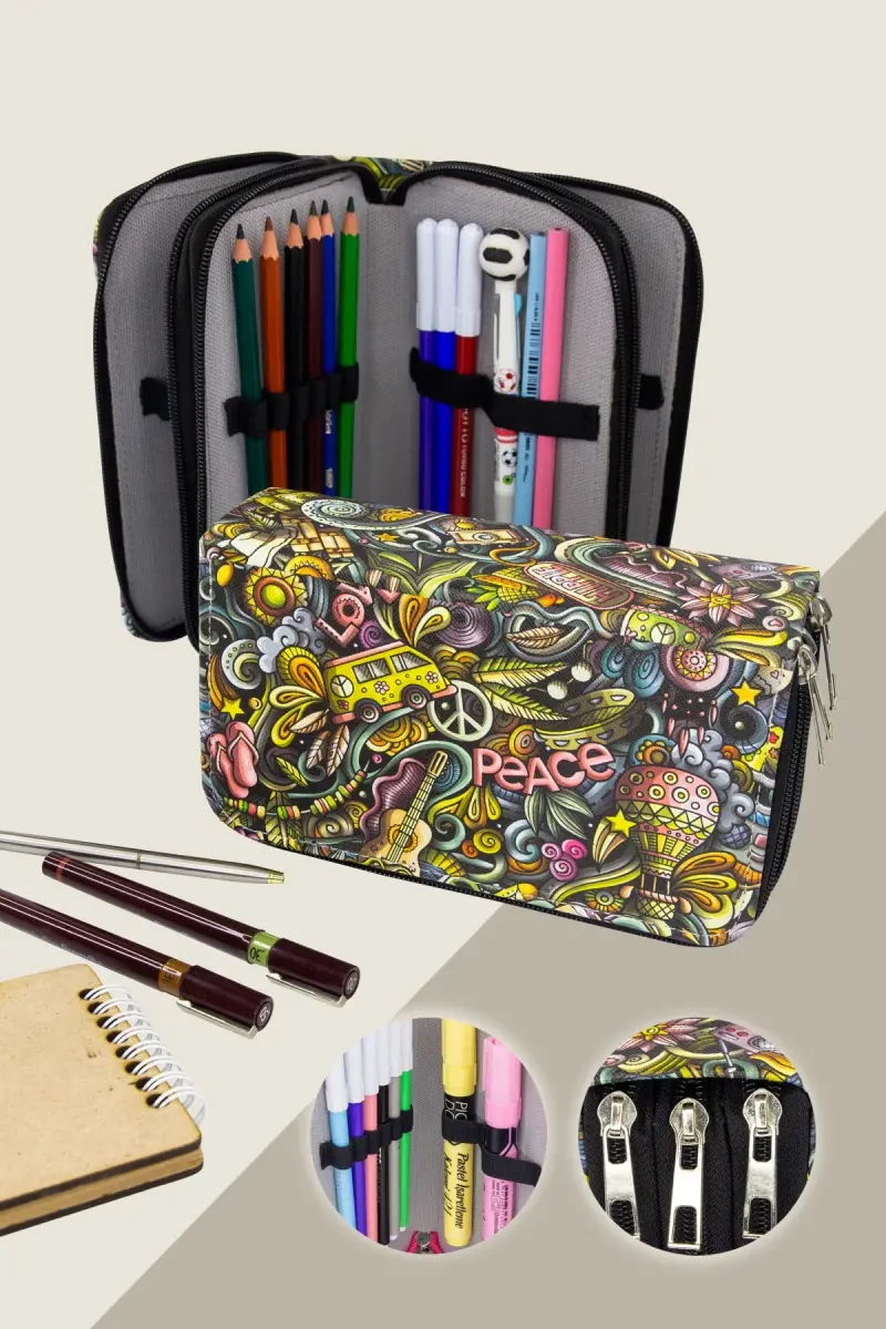 Kalem Kutusu Travel Üç Bölmeli Vegan Deri (kalemlik)-Travel