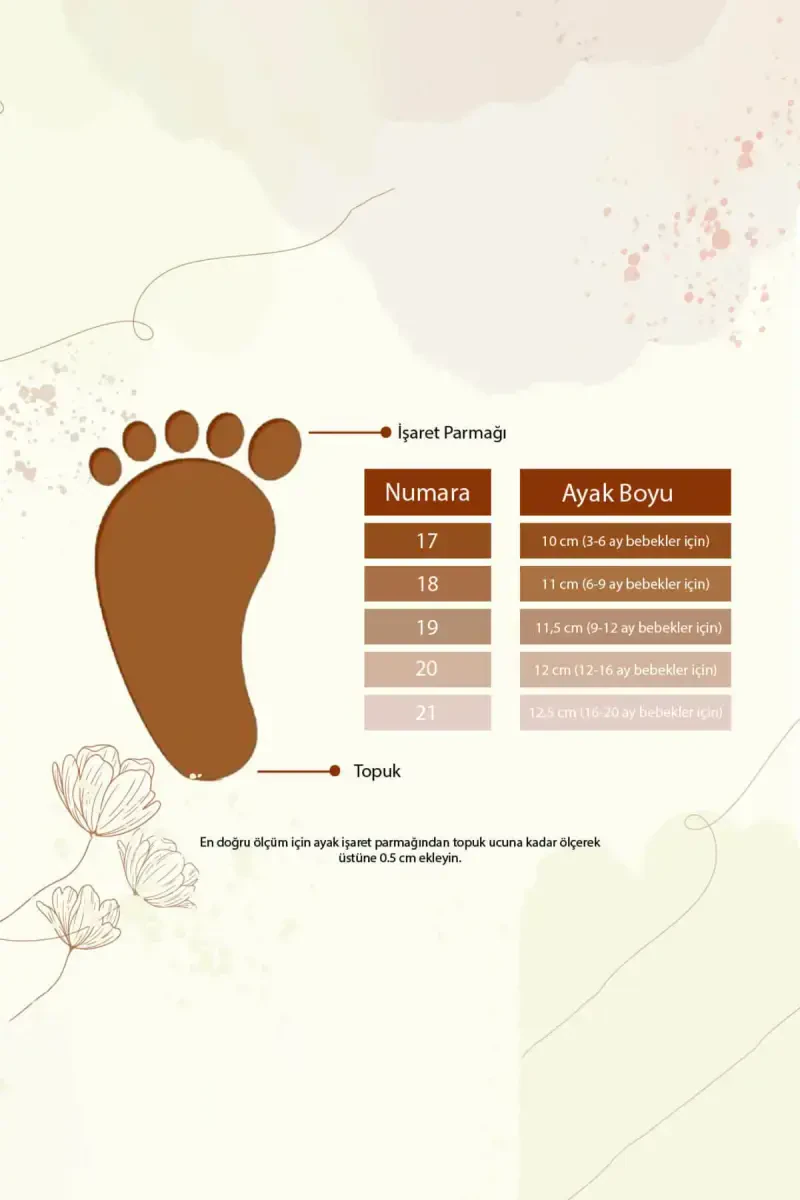 Ayak boyu 11,5 cm ise 19 Numara (9-12 ay bebekler için)