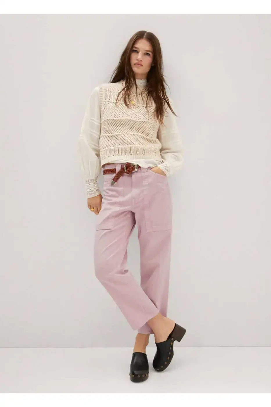 * **Tuz shim:** Klassik va nafis ko'rinish uchun tekis kesilgan.* **Qisqartirilgan dizayn:** Oyoq Bilagingizga ozgina qiyshayib, zamonaviy siluet yaratadi.* **Baland bel:** Bellaringizni ta'kidlab, figuraingizga yoqimli shakl beradi.* **Kamar halqalari:** O'zingizning kamaringiz bilan xohlaganingizcha o'zgartirishingiz mumkin.* **To'rtta cho'ntak:** Kerakli buyumlaringizni saqlash uchun ikkita old cho'ntagi va ikkita orqa cho'ntagi mavjud.* **Fermuar va tugma bilan:** Xavfsiz va qulay moslashishni ta'minlaydi.* **Ichki tikuv: 66 sm*** **Suv va kimyoviy moddalardan foydalanishni kamaytiradigan barqaror texnikalar yordamida ishlab chiqarilgan.**