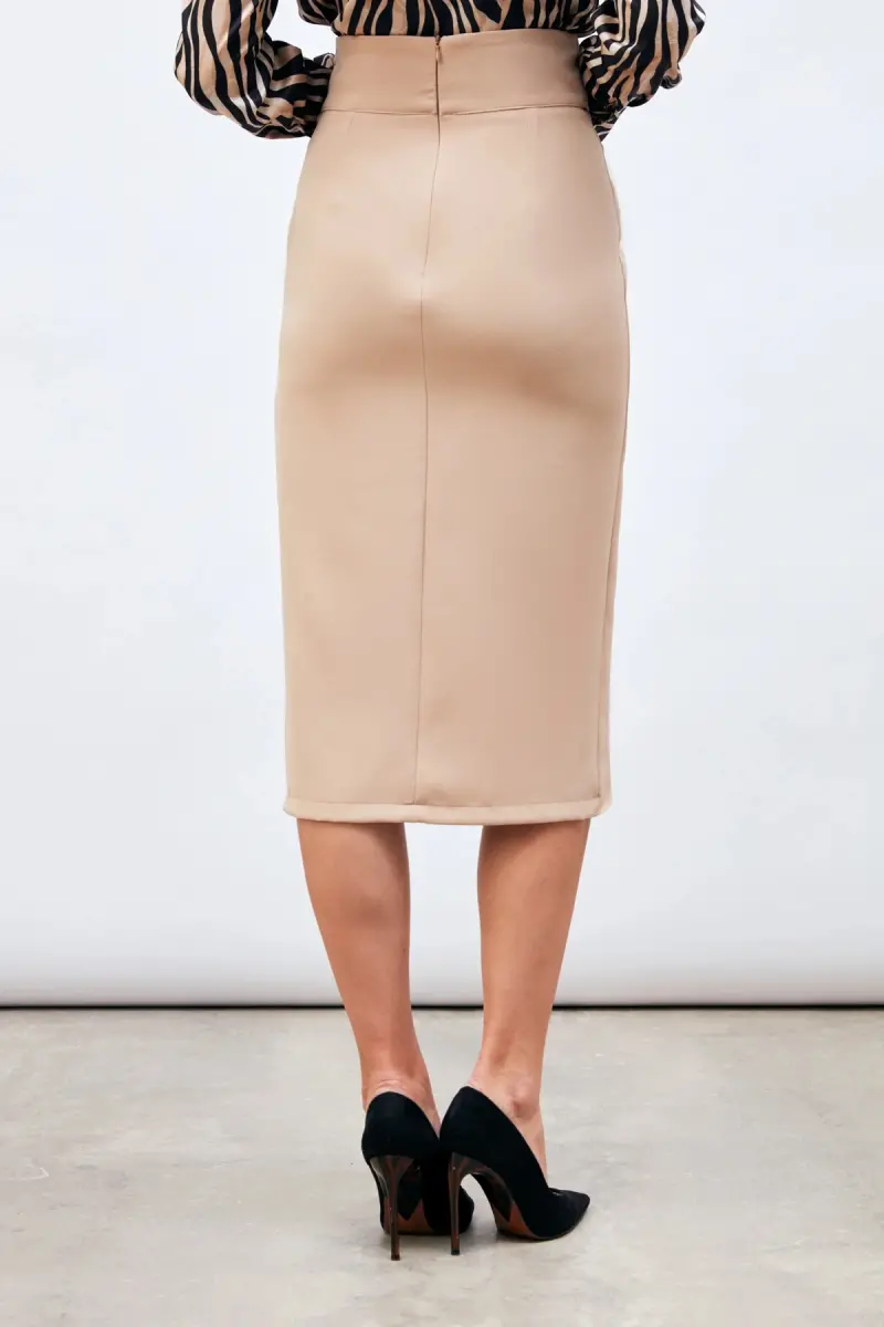qushli qalam yubka, bej yubka, polyester yubka, elastan yubka, midi yubka, ayollar yubkasi, S o'lchamdagi yubka, 36 o'lchamdagi yubka, studiya suratga olish yubkasi, model yubka