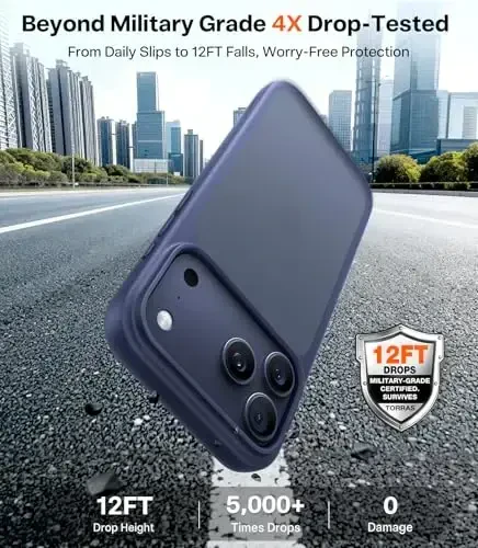 Чехол TORRAS Shockproof iPhone 17 Pro Max обеспечивает превосходную защиту и стильный внешний вид вашего устройства. Этот чехол, которому доверяют пользователи iPhone более 10 лет, обеспечивает защиту от падений военного класса, чтобы ваш телефон был в безопасности от повседневных рисков. Независимо от того, путешествуете ли вы по городу или занимаетесь спортом на открытом воздухе, этот чехол защитит ваш iPhone 17 Pro Max от любых ударов. Встроенные воздушные подушки на 360° и технология Milshock 4.0 снижают ударное воздействие до 37 %, предотвращая повреждение вашего устройства. Материал TPE+TPU, используемый в автомобильных авариях, обеспечивает превосходную долговечность. Приподнятые края защищают камеру и экран от царапин и трещин. Запатентованная емкостная кнопка управления камерой упрощает фото- и видеосъемку, а также защищает вашу камеру. Этот чехол толщиной 0,04 дюйма не добавляет лишнего веса вашему телефону и его удобно носить в кармане. Шелковистая и мягкая на ощупь поверхность не скользит в руке, а края G3 обеспечивают на 30 % больше сцепления. Вы можете отразить свой стиль с помощью 3 различных сменных цветных кнопок DIY. Полупрозрачная матовая задняя поверхность устойчива к отпечаткам пальцев, маслу и пятнам, сохраняя ваш телефон всегда чистым и стильным. TORRAS уделяет первостепенное внимание удовлетворенности клиентов. Этот чехол, разработанный специально для iPhone 17 Pro Max, идеально подходит для вашего устройства и обеспечивает легкий доступ ко всем его функциям. Команда TORRAS Care, доступная круглосуточно и без выходных, всегда рада помочь вам с любыми вопросами и проблемами. С этим чехлом вы можете безопасно использовать свой iPhone 17 Pro Max, сохраняя при этом свой стиль. Обратите внимание, что изделие не является магнитным, поэтому зарядка и магнитное удержание могут быть не такими сильными, как у чехлов с поддержкой MagSafe.