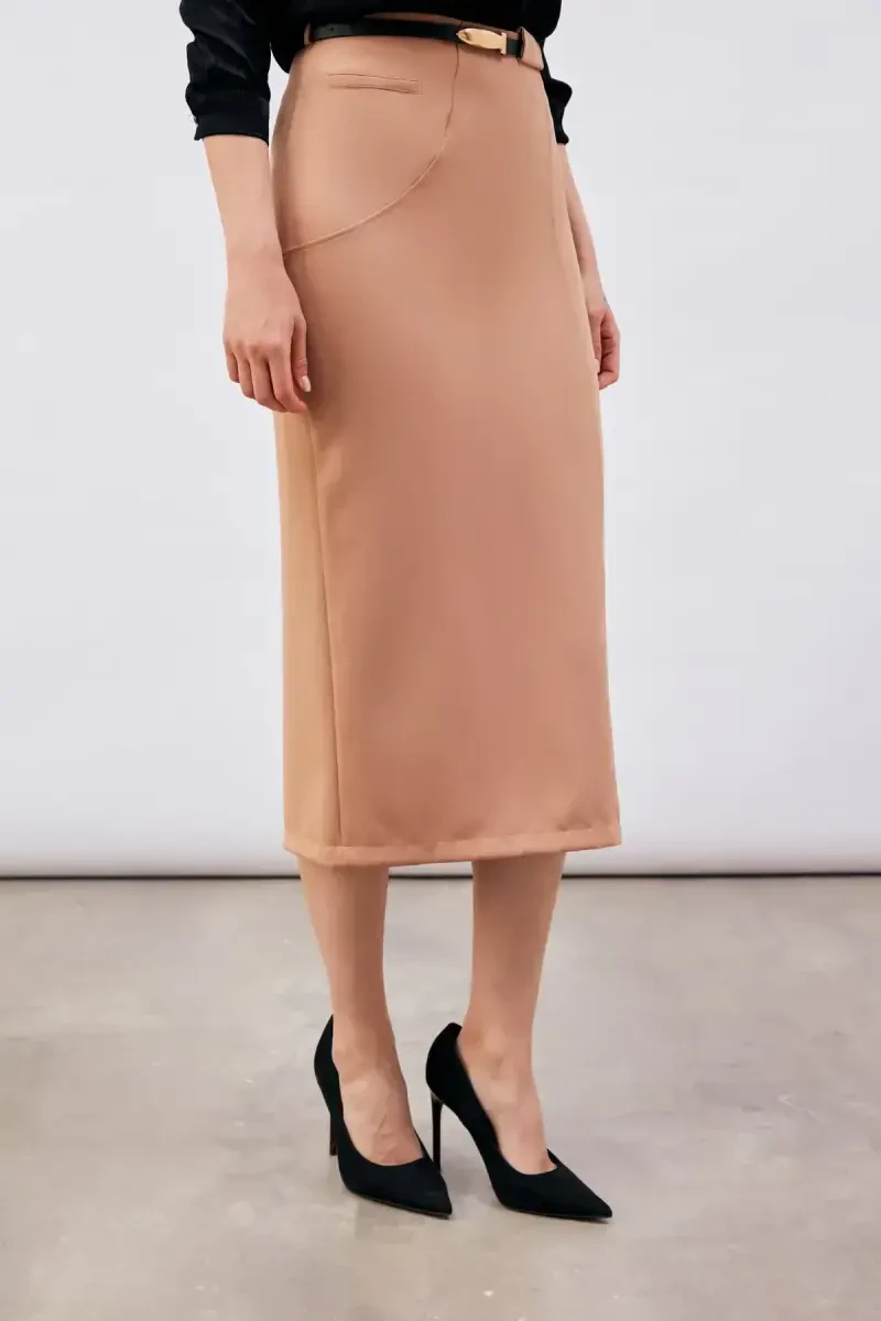 Yuqori sifatli matodan tayyorlangan Kamarli Midi Qalam Yubka qulaylik va nafislikni birlashtiradi.