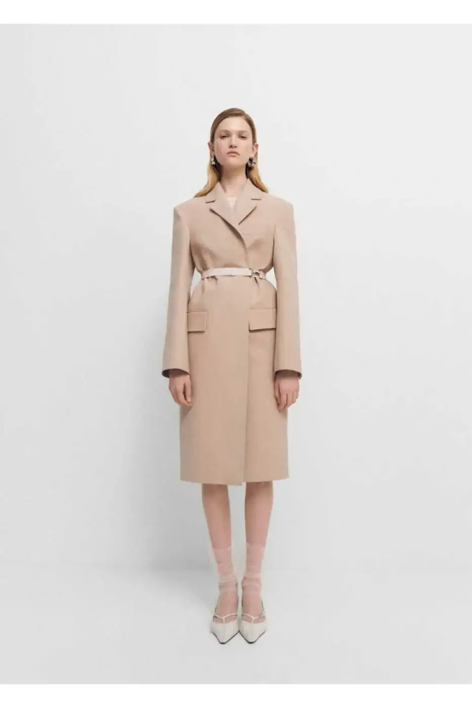 Zamonaviy kesim va abadiy o'ziga xosligi bilan e'tiborni tortadigan kamarli, qolihli juft qatlam mato paltomiz sizning garderobingizning ajralmas qismi bo'lishga mo'ljallangan. Aralash jun mato matoning yumshoq tuzilishi va o'ziga xosligi sizni iliq hamda chiroyli ko'rinishda bo'lishingizni ta'minlaydi. Uzoq va tekis kesimi sizning tanangizga mukammal mos tushib, ayolparvar qiyofangizni ta'kidlaydi.