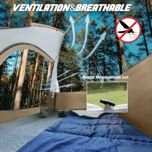 - Удобный дизайн: Сетчатое окно на крыше и большее сетчатое окно предназначены для повышения воздухопроницаемости и комфорта. Внутренний карман для хранения предназначен для того, чтобы ваши вещи были аккуратными и организованными, подходит для отличной вентиляции и наслаждения видом на открытом воздухе и вашим досугом.