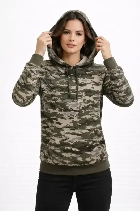 Kamuflaj Desenli 2 İplik 4 Mevsim Kapüşonlu Kanguru Cepli Hoodie Sweatshirt - Kamuflaj
