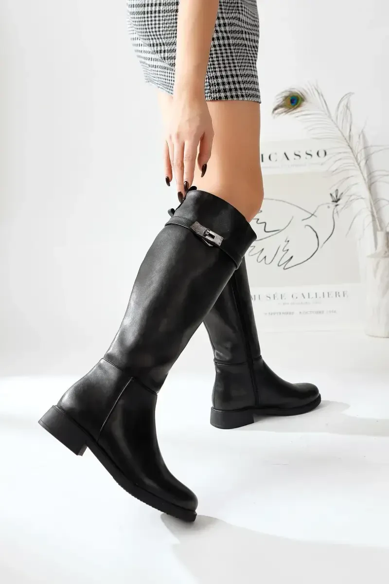 Оцените элегантность и комфорт с женскими сапогами на небольшом каблуке Kanako с черной фурнитурой и молнией! Этот элегантный дизайн повысит вашу уверенность в себе на каждом шагу и дополнит ваш стиль. Благодаря материалу из искусственной кожи, эти сапоги не только прочные, но и экологически чистые, что делает их идеальными для длительного использования. Эта модель, отражающая благородство черного цвета, поражает воображение своей привлекательной фурнитурой и стильной деталью в виде молнии. Эти сапоги, которые вы можете с легкостью использовать как в повседневных сочетаниях, так и в особых случаях, станут незаменимой частью вашего гардероба.Высота небольшого каблука 5 см обеспечивает комфорт в течение всего дня, а также делает ваши ноги длиннее и изящнее. Готовая подошва обеспечивает надежное сцепление с землей, обеспечивая безопасную ходьбу. Благодаря стандартной полноте, они идеально сидят на ногах и обеспечивают комфорт в течение всего дня. Женские сапоги на небольшом каблуке Kanako с черной фурнитурой и молнией - идеальный выбор для женщин, которые хотят быть одновременно стильными и удобными.Эти сапоги выделяются не только своим стилем, но и практичностью. Благодаря молнии сбоку их легко надевать и снимать. Внутренняя подкладка позволяет ногам дышать, предотвращая потоотделение и обеспечивая ощущение свежести в течение всего дня. Черный цвет легко сочетается с любой одеждой и подходит для любой обстановки. Сочетайте их с джинсами, юбками или платьями, вы всегда будете выглядеть стильно и модно.Женские сапоги на небольшом каблуке Kanako с черной фурнитурой и молнией - это особый дизайн, сочетающий в себе качество и стиль. Эти сапоги, в каждой детали которых чувствуется забота и внимание, станут любимой частью вашего гардероба на долгие годы. Добавьте эти стильные сапоги в свою корзину прямо сейчас, чтобы почувствовать себя особенной и отразить свой стиль! Сапоги Kanako, которые являются идеальным вариантом как для повседневного использования, так и для особых случаев, поднимут ваш стиль на ступеньку выше. Выделяйтесь с этими сапогами на каждом шагу и ослепляйте своей элегантностью.