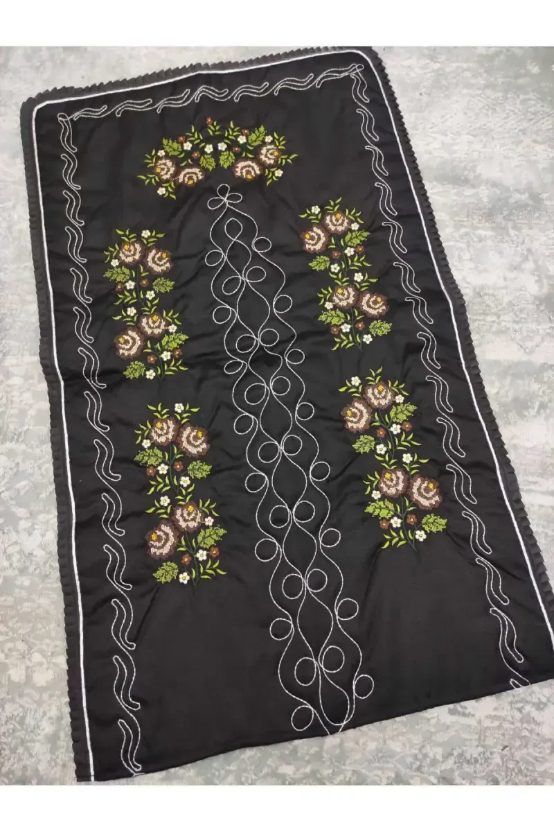 Naqshdor qora aida matosidan tayyorlangan nafis kanaviçe namozlik gilamcha