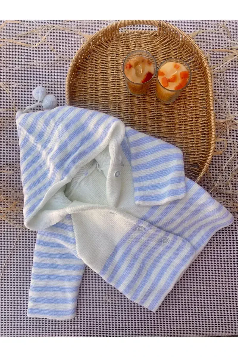 Triko Kapüşonli Bebek Hirka - Chift Katli, Krem Rangi | Qiz & Erkak Bebek Hirkasi | Issiq Tutan, Şık Tasarım
