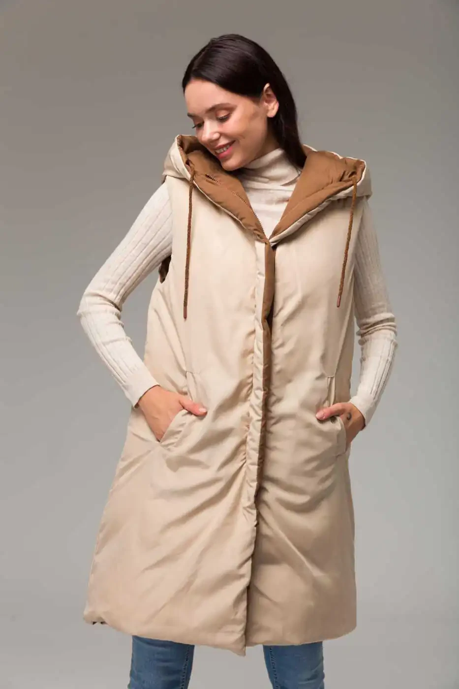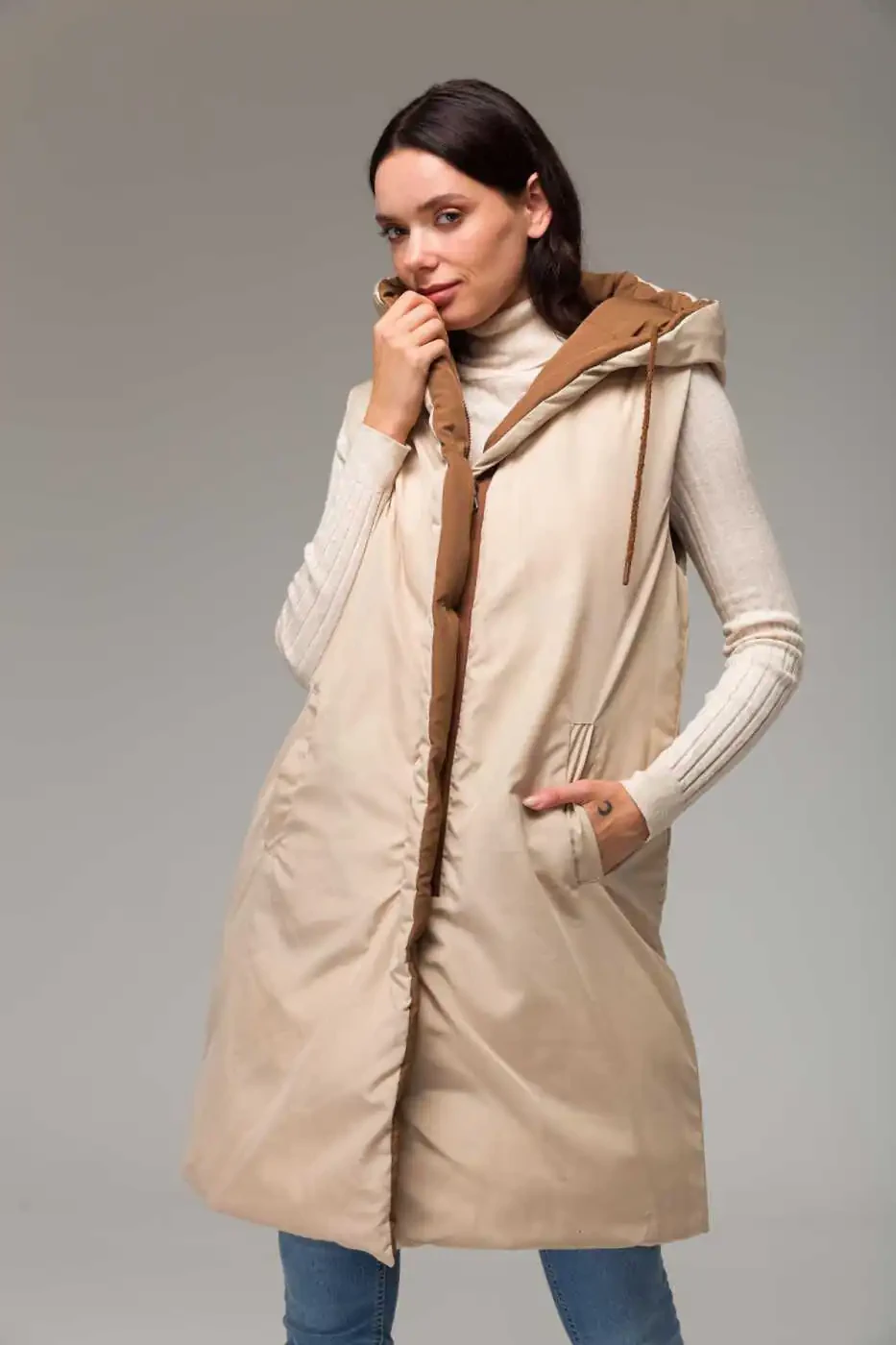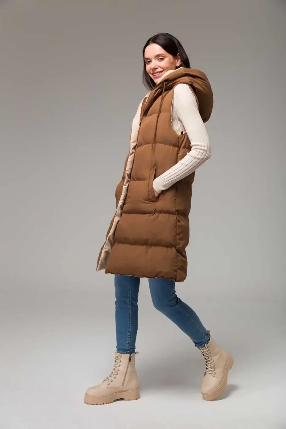 Пуховик-жилет с капюшоном двусторонний Табак-камень 8191 выделяется своим качеством и стилем. Если вы хотите выглядеть тепло и стильно в холодные зимние дни, вам обязательно стоит попробовать этот жилет!