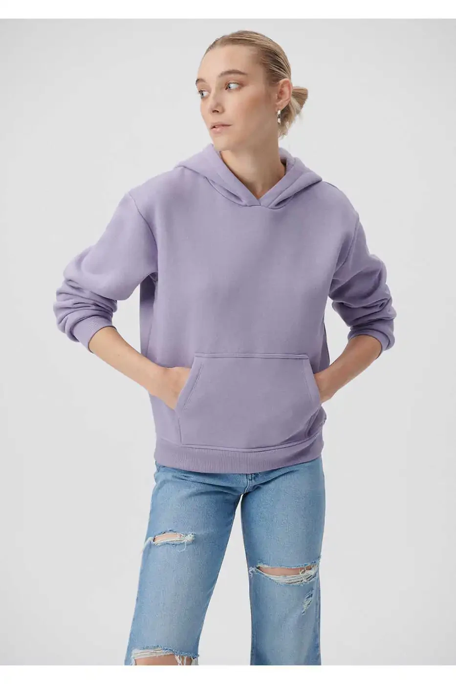 binafsha rangli svitshot, kaputli svitshot, basic svitshot, kundalik kiyim, qulay svitshot, zamonaviy svitshot, 167299-70540