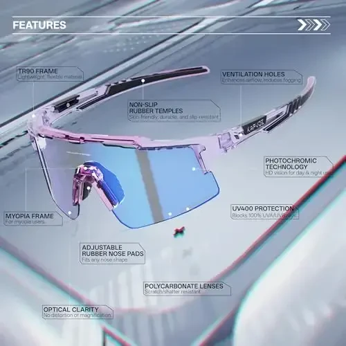 KAPVOE Fotoxromik velosiped ko'zoynaklari sport bilan shug'ullanayotganda ko'z sog'lig'ingizni himoya qilish bilan birga ko'rsatkichlaringizni maksimal darajada oshirish uchun mo'ljallangan. Rangini o'zgartiruvchi linzalar, sozlanishi mumkin bo'lgan burun qismlari, TR90 ramka va UV400 himoyasi kabi xususiyatlari bilan u har qanday ob-havo sharoitida va faoliyatda sizga hamroh bo'ladi. Miyopi ramka mosligi tufayli ko'rish muammolari bo'lgan foydalanuvchilar uchun ham ideal tanlovdir. Zamonaviy dizayni va ko'p qirrali foydalanish sohalari bilan u sportchilarning ajralmas qismiga aylanadi.