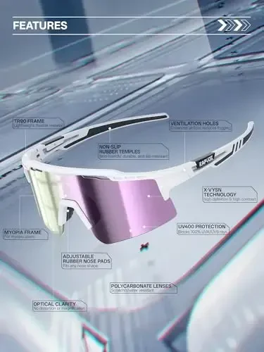 KAPVOE Polarized Cycling Glasses K75 bilan sportdagi ko'rsatkichlaringizni cho'qqiga olib chiqing! Ushbu ko'p qirrali sport quyoshdan saqlaydigan ko'zoynaklar erkaklar va ayollar uchun ideal bo'lib, velosiped, tog' velosipedida yurish, yugurish, baliq ovlash, golf, piyoda sayr qilish va boshqa ko'plab ochiq havoda mashg'ulotlarida mukammal ko'rish va himoya qilishni ta'minlaydi. UV400 himoyali polikarbonat linzalari va bardoshli TR90 ramkasi tufayli uzoq muddatli foydalanish uchun mo'ljallangan. Uch xil linza opsiyasi bilan u har qanday yorug'lik sharoitiga moslasha oladi, sozlanishi burun yostiqchalari va miyopi ramkasi bilan shaxsiylashtirilgan qulaylikni taqdim etadi. KAPVOE K75 bilan ko'zlaringizni himoya qiling va ishlashingizni yaxshilang!