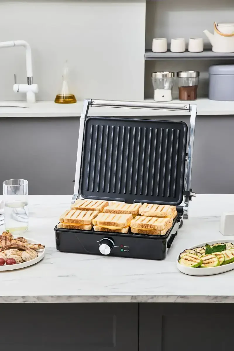 The device, which can serve a large family or your guests with its 4-slice capacity, is also noteworthy for its easy-to-clean structure. Non-stick heating plates prevent food from sticking, making cleaning easier. The adjustable thermostat allows you to set the cooking temperature to your desired level.