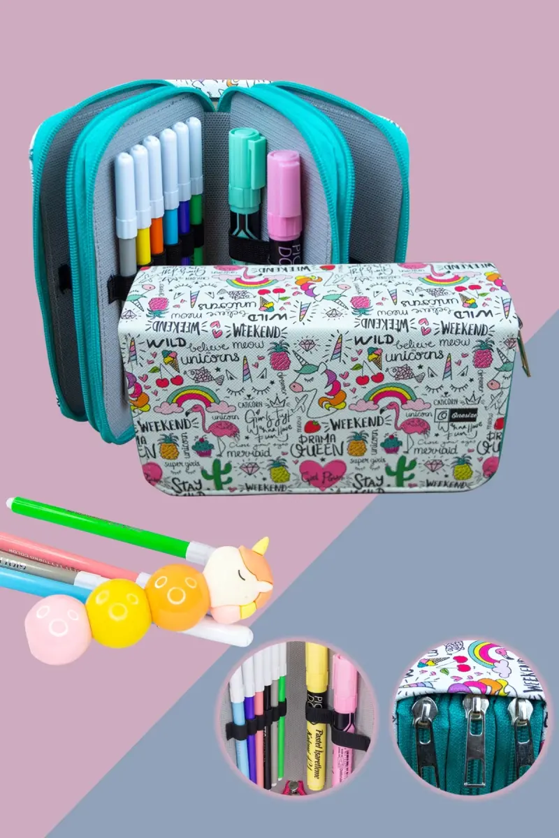 Единорог Пенал | Веганская кожа, 3 отделения, Kawaii стиль