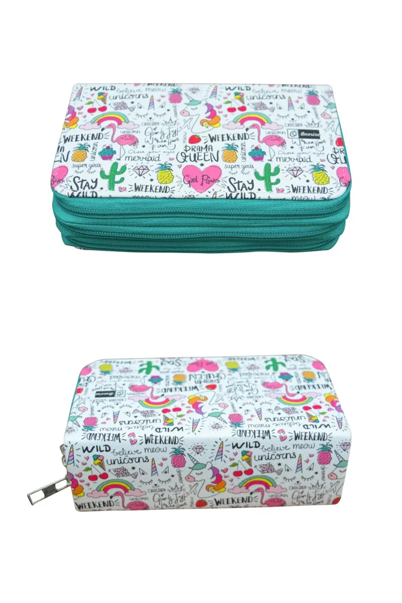 пенал, единорог, каваи, веганская кожа, трехсекционный, пенал, школа, офис, канцелярские товары, зеленая молния