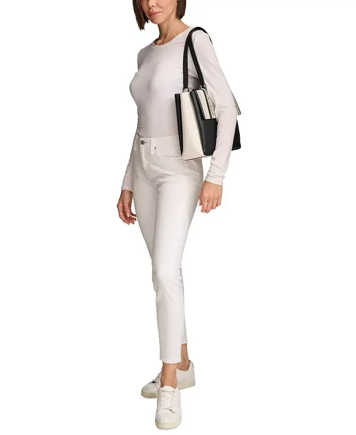Clove Mixed Material Push-Lock Triple Compartment Tote Bag ile tanışın! Calvin Klein'in bu göz alıcı tasarımı, modern yamalı görünümüyle günlük stilinize sofistike bir dokunuş katıyor. Hem şık hem de fonksiyonel olan bu tote çanta, üç bölmeli iç yapısıyla eşyalarınızı düzenli bir şekilde taşımanıza olanak tanır. Günlük kullanımın yanı sıra özel günlerinizde de size eşlik edecek bu çanta, tarzınızı tamamlayacak mükemmel bir seçimdir.Orta boy tasarımı sayesinde, hem ihtiyacınız olan her şeyi yanınızda taşıyabilir, hem de ağırlığıyla sizi yormaz. Çantanın dikkat çekici detayları arasında, gümüş tonlu donanımlar ve şık yılan derisi deseni yer alıyor. Bu detaylar, çantanın genel estetiğini zenginleştirerek, onu her kombininize uyum sağlayacak çok yönlü bir aksesuar haline getiriyor.Çantanın iç kısmında bulunan fermuarlı ve açık cepler, telefonunuzu, anahtarlarınızı ve diğer küçük eşyalarınızı güvenli bir şekilde saklamanız için idealdir. Özellikle hareketli bir yaşam tarzına sahipseniz, bu özellikler sayesinde eşyalarınıza kolayca erişebilir ve düzenli kalabilirsiniz. Push-lock kapama mekanizması, eşyalarınızın güvende kalmasını sağlarken, çantanın kullanımını da kolaylaştırır.Clove Mixed Material Push-Lock Triple Compartment Tote Bag, sadece bir çanta değil, aynı zamanda bir moda ifadesidir. İster günlük kıyafetlerinizle, ister daha şık kombinlerinizle kullanın, bu çanta her zaman stilinizi ön plana çıkaracaktır. Modern tasarımı, fonksiyonel iç yapısı ve dikkat çekici detaylarıyla bu çanta, gardırobunuzun vazgeçilmez bir parçası olmaya aday. Şıklığı ve kullanışlılığı bir arada arayan kadınlar için ideal bir seçim olan bu tote çanta, Calvin Klein kalitesiyle uzun yıllar boyunca size eşlik edecek.