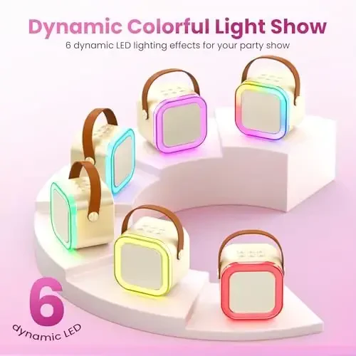 Unleash the fun with the Portable Bluetooth Mini Karaoke Microphone Speaker designed for kids and adults! This karaoke machine is the perfect entertainment source for all smartphones, birthday parties, family gatherings, and house parties. This device, with its eye-catching gold design, comes with two wireless microphones and takes your karaoke experience to the next level. Thanks to its high-sensitivity drivers, it offers breathtaking stereo sound with exceptional clarity and zero distortion. It is an ideal option for your home parties and outdoor events. Enjoy 6-10 hours of uninterrupted fun with Peski's special, long-lasting rechargeable battery technology. Save time with fast charging and use it as a power bank to charge your smartphone or tablet. This long-lasting design, which makes it easy to take the party anywhere, is perfect for parties and family gatherings! Thanks to Bluetooth 5.0 TWS technology, two microphones automatically connect to each other and instant pairing is achieved. It offers stable transmission and an unobstructed long distance of 15 meters. This karaoke machine supports TF card, USB and AUX input connections and is compatible with Android devices, TVs, iPads, tablets, car karaoke systems and PCs. The PA karaoke system is equipped with colorful disco lights and has an independent button to change the lights. With 5 different magic sound effects including monster, baby, female, male, original/accompaniment, this Bluetooth party speaker provides endless fun and happiness for adults and children. This mini karaoke machine is an ideal gift for birthdays, parties, gatherings, young girls and boys aged 8-12, 3, 4, 5, 6, 7, 8, 9, 10, 11, 12+ years old and above. It is a great gift choice for special occasions such as Halloween, Christmas, Easter, Valentine's Day, Thanksgiving, New Year. With its small size, this portable Bluetooth speaker is very easy to carry and you can take the mini karaoke machine with you wherever you go! Perfect for family and children's parties, birthdays, family gatherings, outdoor events, trips, classrooms and all kinds of events. We offer LIFETIME AFTER-SALES support and NO-REASON EXCHANGE service to every customer! If you have any problems while using the song machine, we will be happy to assist you and resolve any issue within 24 hours.
