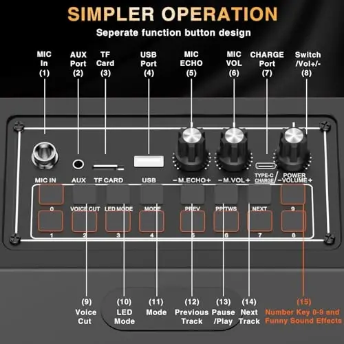 Караоке-машина с 2 беспроводными микрофонами, портативный Bluetooth-динамик для караоке для взрослых и детей со стробоскопами, микрофон для караоке с системой звукоусиления, поддерживающей TWS/USB/TF/REC/FM/AUX, для домашней вечеринки