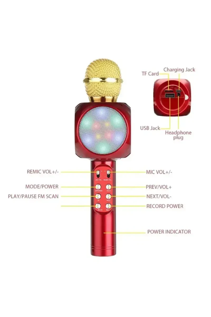 With this Karaoke Microphone specially designed for children, little stars take the stage! Thanks to its Bluetooth feature, it can easily be paired with your smartphones, tablets or other Bluetooth-enabled devices, and you can play your favorite songs. While its light-up design makes the karaoke experience even more fun, the red-red color combination of the 1816 model will attract children's attention. This microphone encourages children's interaction with music while helping them improve their hand-eye coordination and sense of rhythm. Thanks to its portable and lightweight design, it can be easily carried anywhere, so children can have a karaoke party whenever they want.**Product Description**Meet the Karaoke Microphone Bluetooth Enabled Children's Microphone Karaoke Lighted Microphone 1816 Red-Red, which colors children's imagination and allows them to be intertwined with music! This special microphone is designed for little singers to showcase their talents and have a pleasant time. Thanks to the Bluetooth connection, they can easily play their favorite songs from their smartphones, tablets or other Bluetooth-enabled devices. Moreover, eye-catching light effects make the karaoke experience even more fun and exciting. The vibrant red-red color combination of the 1816 model attracts children's attention and offers them a cheerful atmosphere. This microphone is not just a toy, but also a tool that contributes to children's development. By interacting with music, it helps them improve their hand-eye coordination, sense of rhythm and even self-confidence. It increases their ability to express themselves while singing and supports their creativity. Thanks to its portable and lightweight design, the Karaoke Microphone can be easily carried anywhere. Children can have a karaoke party whenever they want, in the park, picnic, birthday party or at home. It is extremely easy to use, so children can enjoy using it on their own. It is made of durable materials and is long-lasting, so children can enjoy this fun for a long time. This microphone is a perfect option to ignite children's love of music and help them create unforgettable memories. This product, which is both fun and educational, contributes to your children's development while offering them a pleasant gaming experience. Discover the star inside your children with the Karaoke Microphone Bluetooth Enabled Children's Microphone Karaoke Lighted Microphone 1816 Red-Red!**Product Features*** Easy song playing with Bluetooth connection* Fun karaoke experience with light-up design* Vibrant red-red color combination* Portable and lightweight design* Improves children's hand-eye coordination and sense of rhythm* Made of durable materials* Easy to use* Encourages interaction with music* Supports creativity* Increases self-confidence**Additional Information**The product is suitable for children aged 3 and over. The user manual is included in the box. Batteries are required for the microphone to operate (batteries are not included in the box). It can be cleaned with a damp cloth. Do not expose to direct sunlight and extreme heat.
