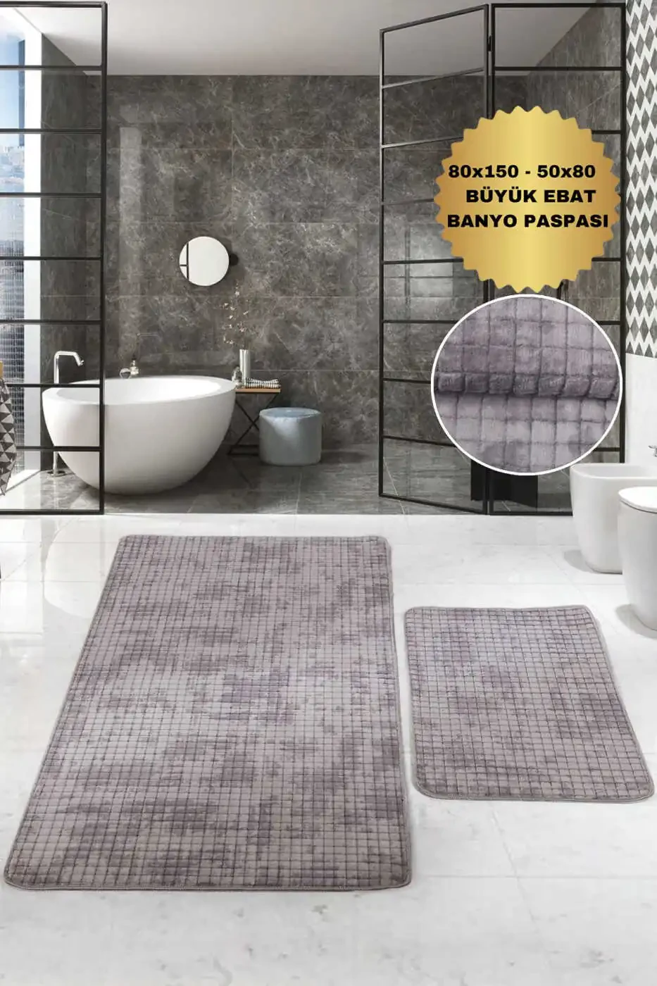 Transform your bathroom with the Kare Plus Gray 80x150+50x80 Large Bath Mat Set, combining style and comfort! This magnificent two-piece set includes a large 80x150 cm bath mat and a smaller 50x80 cm mat. Its soft and relaxing texture provides a luxurious experience you'll feel underfoot after every shower. The gray color easily complements any bathroom decor, and this set is designed to maintain its style and functionality for years to come. Its easy-to-clean construction is stain-resistant and easily removes everyday dirt and stains. The non-slip PVC base ensures safe use while keeping it securely in place, eliminating the risk of slipping. Its thick and soft texture provides a superior comfort experience compared to thin mats. Its anti-allergenic and anti-bacterial properties create a hygienic environment and contribute to your health. Its practical and useful design is an ideal choice for those seeking both a stylish look and a practical solution. It's also machine washable, making cleaning a breeze. Remember to wash on a low spin cycle and avoid spin-drying!