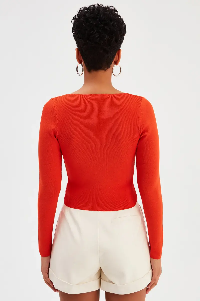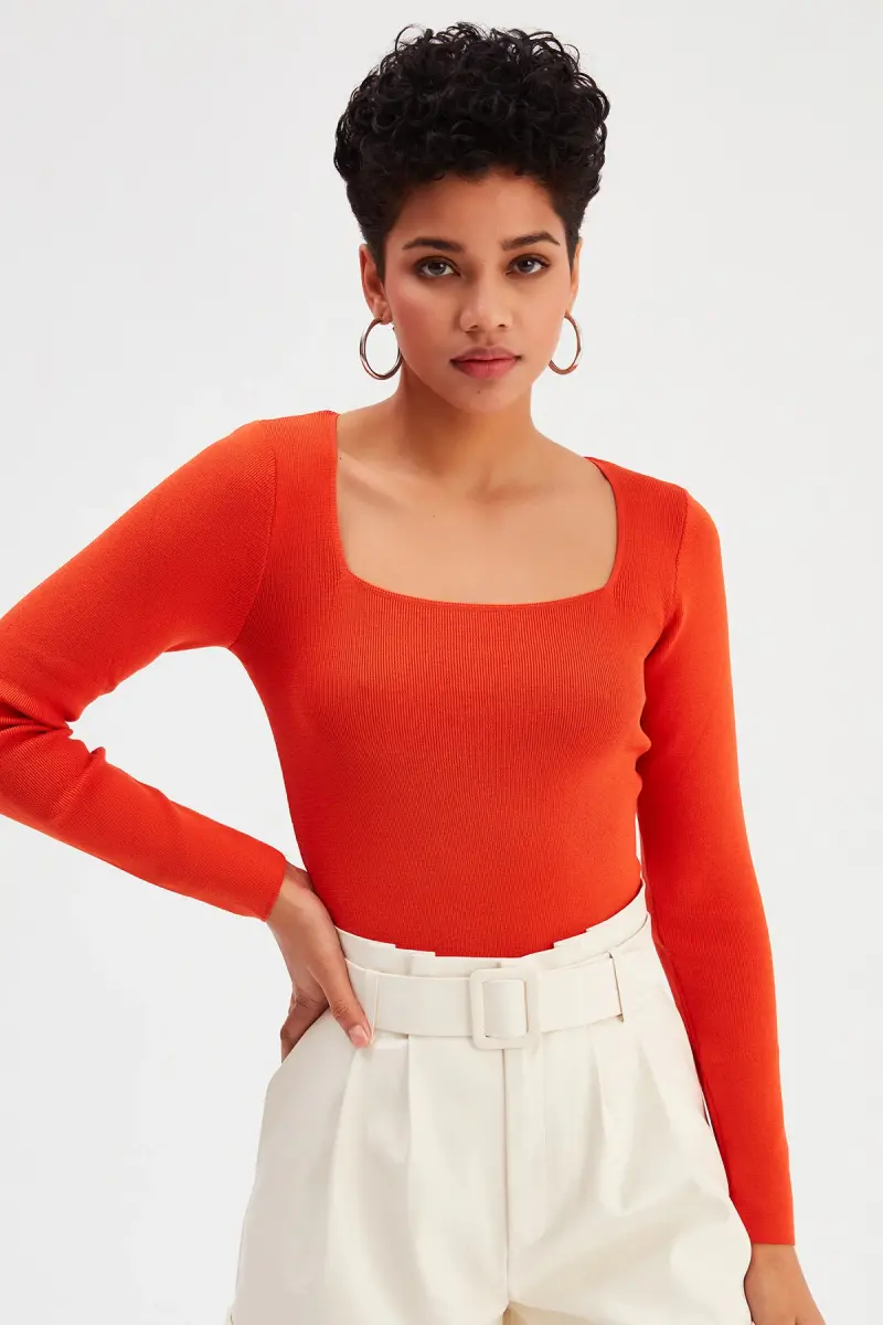 Kare Yaka Triko - Yanık Oranj-YANIK ORANJ