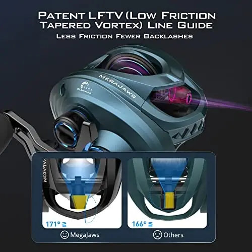 KastKing MegaJaws Elite Baitcasting Fishing Reel, New AutoMag Dual Braking System, Only 6.7oz, 17.64 LBs Carbon Fiber Drag, 11+1 Shielded BB, High Speed 5.4: 1 to 9.1: 1 Gear Ratios