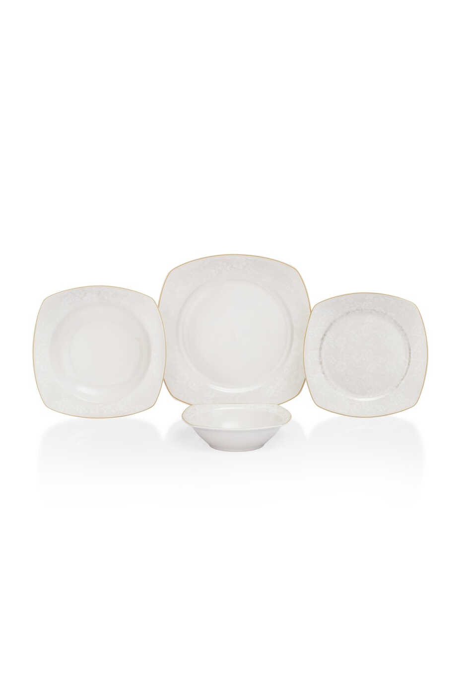The Kate Dinner Set includes 12 dinner plates, 12 soup plates, 12 dessert plates, 12 teacups and 12 saucers. This extensive set is designed to meet all your table needs, from everyday meals to special occasion invitations.
