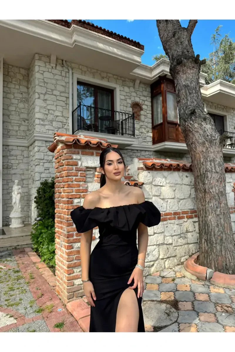 PRODUCT DESCRIPTION:Capture the perfect harmony of elegance and style with the Katre Ruffle Collar Slit Evening Dress! Designed for women who want to dazzle at every special event, from special invitations to weddings, engagement ceremonies to cocktails, this evening dress attracts attention with its modern details and perfect cut. Combining the nobility of black and the romance of ruffle details, this evening dress is a candidate to be the most valuable piece of your wardrobe. One of the most striking features of the evening dress is the ruffle details used in the elegant collar design. These ruffles add movement and vitality to the evening dress, while also highlighting your facial features. The romantic air of the collar adds a feminine touch to the overall design of the evening dress. Another detail that supports the modern and striking appearance of the evening dress is the slit on the skirt. The slit provides both freedom of movement and adds a bold and assertive air to the evening dress. This slit detail, which elegantly displays your legs, adds a modern touch to the evening dress. Katre Ruffle Collar Slit Evening Dress stands out not only with its design but also with the quality of the fabric used. Made of a body-fitting, high-quality and comfortable fabric, this evening dress offers comfortable use all day long. The flowing structure of the fabric ensures that the evening dress sits perfectly on you and adapts to your movements. The black color of the evening dress easily adapts to all skin tones and styles. The classic and timeless elegance of black makes the evening dress wearable in any environment. This evening dress, which you can easily combine with different accessories and shoes, offers you the opportunity to create many different styles. To complete the evening dress, you can choose a stylish clutch bag, elegant high-heeled shoes and eye-catching jewelry. You can highlight the collar detail of the evening dress by leaving your hair up or down. You can complete your make-up with assertive options such as smoky eyes or red lips, in accordance with the black color of the evening dress. Katre Ruffle Collar Slit Evening Dress is an ideal choice for women who want to leave an unforgettable mark on their special days. This evening dress, which attracts attention with its both stylish and modern design, will represent you in every environment in your most beautiful and self-confident state. With this evening dress that will be an indispensable part of your wardrobe, all eyes will be on you! Remember, with Katre, elegance and style come together!Product DescriptionCapture the perfect harmony of elegance and style with the Katre Ruffle Collar Slit Evening Dress! Designed for women who want to dazzle at every special event, from special invitations to weddings, engagement ceremonies to cocktails, this evening dress attracts attention with its modern details and perfect cut. Combining the nobility of black and the romance of ruffle details, this evening dress is a candidate to be the most valuable piece of your wardrobe. One of the most striking features of the evening dress is the ruffle details used in the elegant collar design. These ruffles add movement and vitality to the evening dress, while also highlighting your facial features. The romantic air of the collar adds a feminine touch to the overall design of the evening dress. Another detail that supports the modern and striking appearance of the evening dress is the slit on the skirt. The slit provides both freedom of movement and adds a bold and assertive air to the evening dress. This slit detail, which elegantly displays your legs, adds a modern touch to the evening dress. Katre Ruffle Collar Slit Evening Dress stands out not only with its design but also with the quality of the fabric used. Made of a body-fitting, high-quality and comfortable fabric, this evening dress offers comfortable use all day long. The flowing structure of the fabric ensures that the evening dress sits perfectly on you and adapts to your movements. The black color of the evening dress easily adapts to all skin tones and styles. The classic and timeless elegance of black makes the evening dress wearable in any environment. This evening dress, which you can easily combine with different accessories and shoes, offers you the opportunity to create many different styles. To complete the evening dress, you can choose a stylish clutch bag, elegant high-heeled shoes and eye-catching jewelry. You can highlight the collar detail of the evening dress by leaving your hair up or down. You can complete your make-up with assertive options such as smoky eyes or red lips, in accordance with the black color of the evening dress. Katre Ruffle Collar Slit Evening Dress is an ideal choice for women who want to leave an unforgettable mark on their special days. This evening dress, which attracts attention with its both stylish and modern design, will represent you in every environment in your most beautiful and self-confident state. With this evening dress that will be an indispensable part of your wardrobe, all eyes will be on you! Remember, with Katre, elegance and style come together!Product Features* Ruffle details on the collar* Slit detail on the skirt* High quality, comfortable and flowing fabric* Classic and timeless elegance of black* Perfect fit that fits the body* Ideal for special invitations and events* Easy to combine with different accessories* Feminine and modern design* Structure providing freedom of movement* Eye-catching and elegant appearanceAdditional InformationIt is recommended to follow the washing instructions on the label for the long life of our product. Dry cleaning can be preferred. The product is available in different sizes. Please choose the size that suits you by examining the size chart. Product images were taken in the studio environment, there may be slight color changes due to light differences.