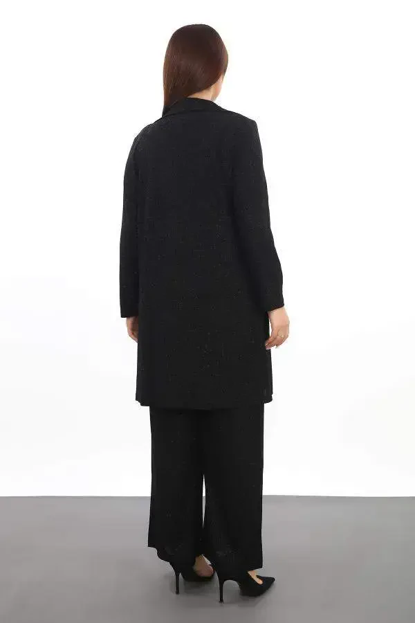KL3081 Qora rangdagi ajoyib Plus Hajmdagi Ayollar uchun 3 qismli payetli to'plamimizda yulduz kabi porlang. Ushbu ajoyib 3 qismli ansambl sizni har qanday maxsus holatda diqqat markaziga aylantiradi.