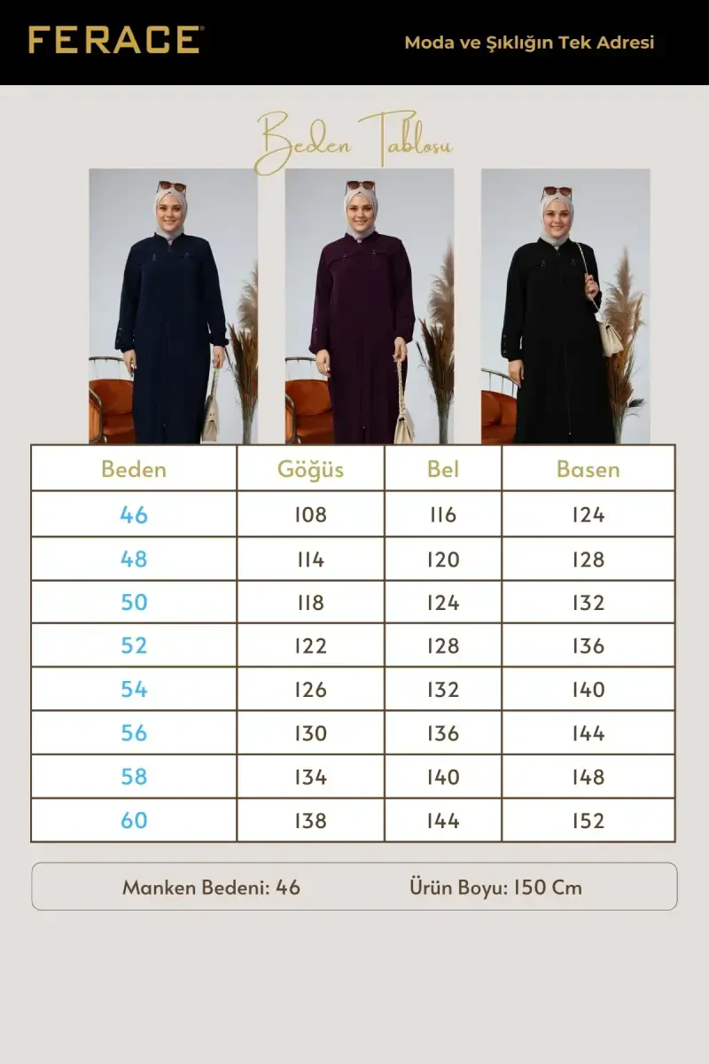 Katta o'lchamdagi tesettür kiyimida qidirayotgan nafislik va qulaylik bu farajada birlashadi! Yoz oylarining ajralmas qismiga aylanadigan bu uzun faraja, yengil va nafas oluvchi matosi tufayli kun bo'yi qulaylikni ta'minlaydi. Qoraning go'zalligi bilan yaratilgan bu faraja, har qanday muhitda nafosatingizni oldinga chiqaradi. Qo'llardagi nafis tugma detallari farajaga zamonaviy bir tegish berib, tesettür kiyinish uslubingizga boshqa bir o'lcham beradi. Kundalik foydalanishdan tashqari maxsus tadbirlarda ham osongina afzal ko'rishingiz mumkin bo'lgan bu faraja, garderobingizning eng sevimli qismiga aylanishga nomzod. Katta o'lchamdagi kesimi tufayli tana chiziqlaringizni nozik tarzda yashiradi va harakat erkinligingizni cheklamaydi. Xohlang, poshnali poyabzallar bilan nafis bir kombinatsiya qiling, xohlang, sport poyabzallari bilan yanada kundalik uslub yarating; bu faraja har qanday kombinatsiyangizga mos keladi. Yuqori sifatli matosi tufayli uzoq umr ko'rish imkoniyatini taqdim etadigan bu faraja, oson dazmollanadigan xususiyati bilan ham amaliy tanlovdir. Qora rangning abadiy nafisligi farajani har mavsumda kiyishingiz mumkin bo'lgan bir qismga aylantiradi. Tesettür kiyimida ham zamonaviy, ham an'anaviy chiziqlarni birga taklif qiluvchi bu faraja, uslubingizni eng yaxshi tarzda aks ettirishingizni ta'minlaydi. O'zingizni maxsus his qilish va nafosatingiz bilan ko'zni qamashtirish uchun bu katta o'lchamdagi tesettür uzun farajani darhol savatingizga qo'shing! Garderobingizning ajralmas qismiga aylanadigan bu qism, ham qulaylikni, ham nafislikni birga taklif qilib, sizni har doim xursand qiladi. Unutmang, nafislik detallarda yashiringan va bu faraja, har bir detali bilan e'tibor bilan yaratilgan.