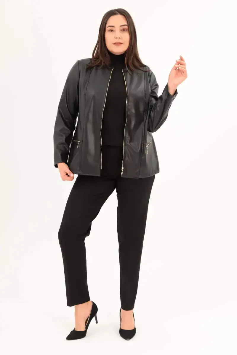 katta o'lchamdagi teri ko'ylagi, qora teri ko'ylagi, zamonaviy teri ko'ylagi, jozibali teri ko'ylagi, qattiq teri ko'ylagi