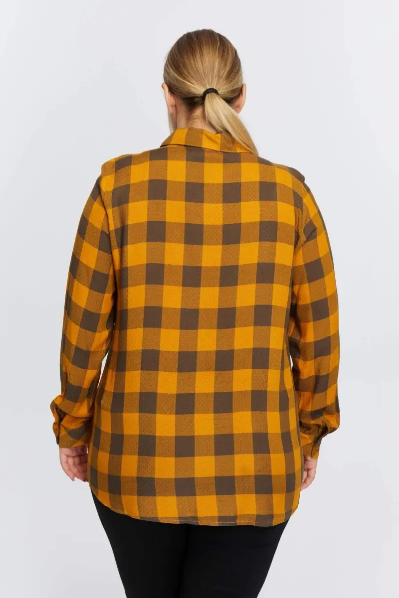 Katta o'lchamdagi katakli ko'ylak - Xantal rangi
