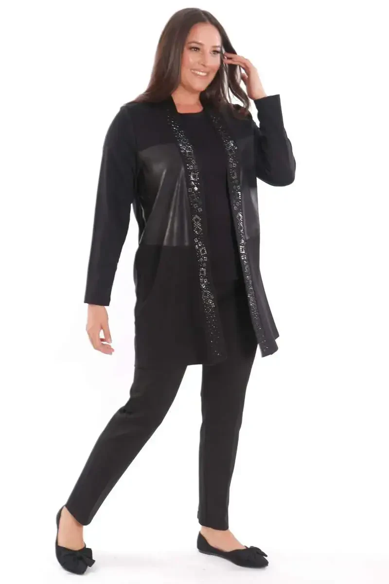 Katta o'lchamli teri old qismli tosh bosmali qora kardigan ham kundalik foydalanish, ham maxsus kunlar uchun ideal tanlovdir. Sifatli materiallari va puxta ishlashi tufayli uzoq muddat xizmat qiladi. Kardiganing old qismidagi teri qismlari dizaynga boshqa o'lcham qo'shsa, tosh bosmalari nafislikni oldinga chiqaradi. Katta o'lchamli kesim harakat erkinligingizni cheklamagan holda qulay foydalanishni ta'minlaydi. Qora rangning zodagonligi har qanday kiyim bilan oson kombinatsiyalash imkonini beradi. Xoh jinsi bilan sport ko'rinishiga ega bo'ling, xoh yubka va bluzka bilan yanada nafis kombinatsiya yarating, bu kardigan har doim uslubingizni to'ldiradi. Sovuq havoda sizni issiq tutadi, nafisligingizdan voz kechishingizga yo'l qo'ymaydi. Yuqori sifatli materialdan ishlab chiqarilgan bo'lib, uzoq muddat foydalanishga mos keladi. Kardigandagi tosh bosmalari maxsus texnikalar bilan qilingan va osonlikcha chiqib ketmaydi. Shu sababli, kardiganingizni uzoq vaqt davomida birinchi kundagidek ishlatishingiz mumkin. Katta o'lchamli bo'lishi, turli tana turlariga ega ayollar osongina tanlashi mumkin bo'lgan mahsulot bo'lishini ta'minlaydi. Old teri qismlari kardiganga zamonaviy va murakkab havo beradi. Tosh bosmalari esa dizaynga harakatchanlik va jonlilik qo'shadi. Ushbu kardigan garderobingizning ajralmas qismiga aylanadi va har qanday kombinatsiyangizga nafislik qo'shadi. Ham kundalik foydalanishda, ham maxsus kechalarda bemalol tanlashingiz mumkin bo'lgan bu kardigan uslubingizni aks ettirishga yordam beradi. O'zingizni maxsus his qilish va nafisligingizni oldinga chiqarish uchun katta o'lchamli teri old qismli tosh bosmali qora kardiganni tanlashingiz mumkin. Ushbu kardigan faqat kiyim emas, balki uslub ifodasidir. Har bir detalida e'tibor va sifatni o'z ichiga olgan ushbu mahsulot sizni har qanday muhitda farqli qiladi. Ham qulaylikni, ham nafislikni birga taqdim etadigan ushbu kardigan garderobingizning eng sevimli qismlaridan biri bo'lishga nomzoddir. Ustingizga o'tkazgan zahotingiz farq yaratadi va uslubingizni bir qadam oldinga olib chiqadi.
