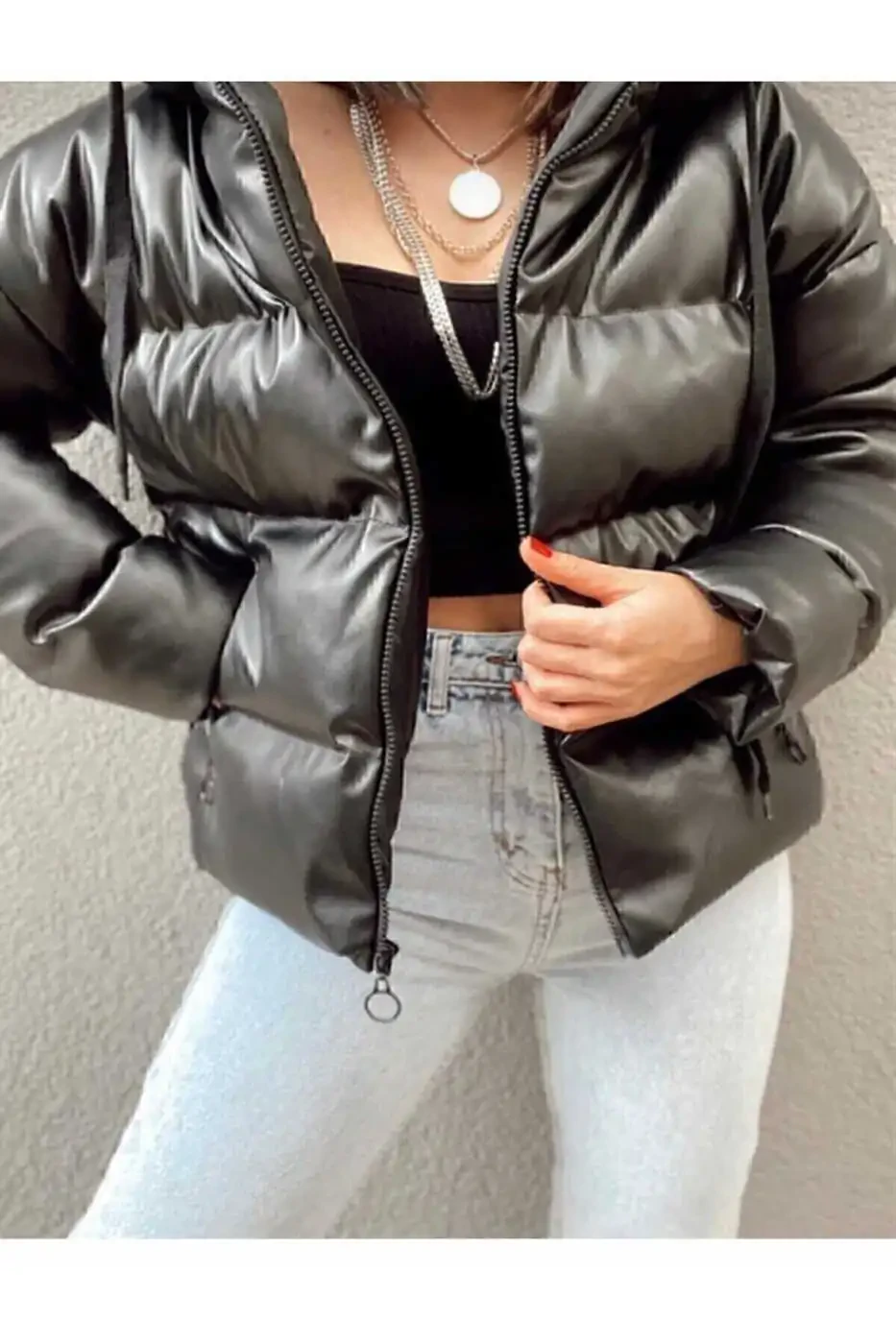 oversize teri ko'ylagi, qora puffer ko'ylagi, qishki ko'ylagi, teri palto, ayollar ko'ylagi, erkaklar ko'ylagi, uslubli ko'ylagi, iliq ko'ylagi, oversize kiyim, teri kiyim