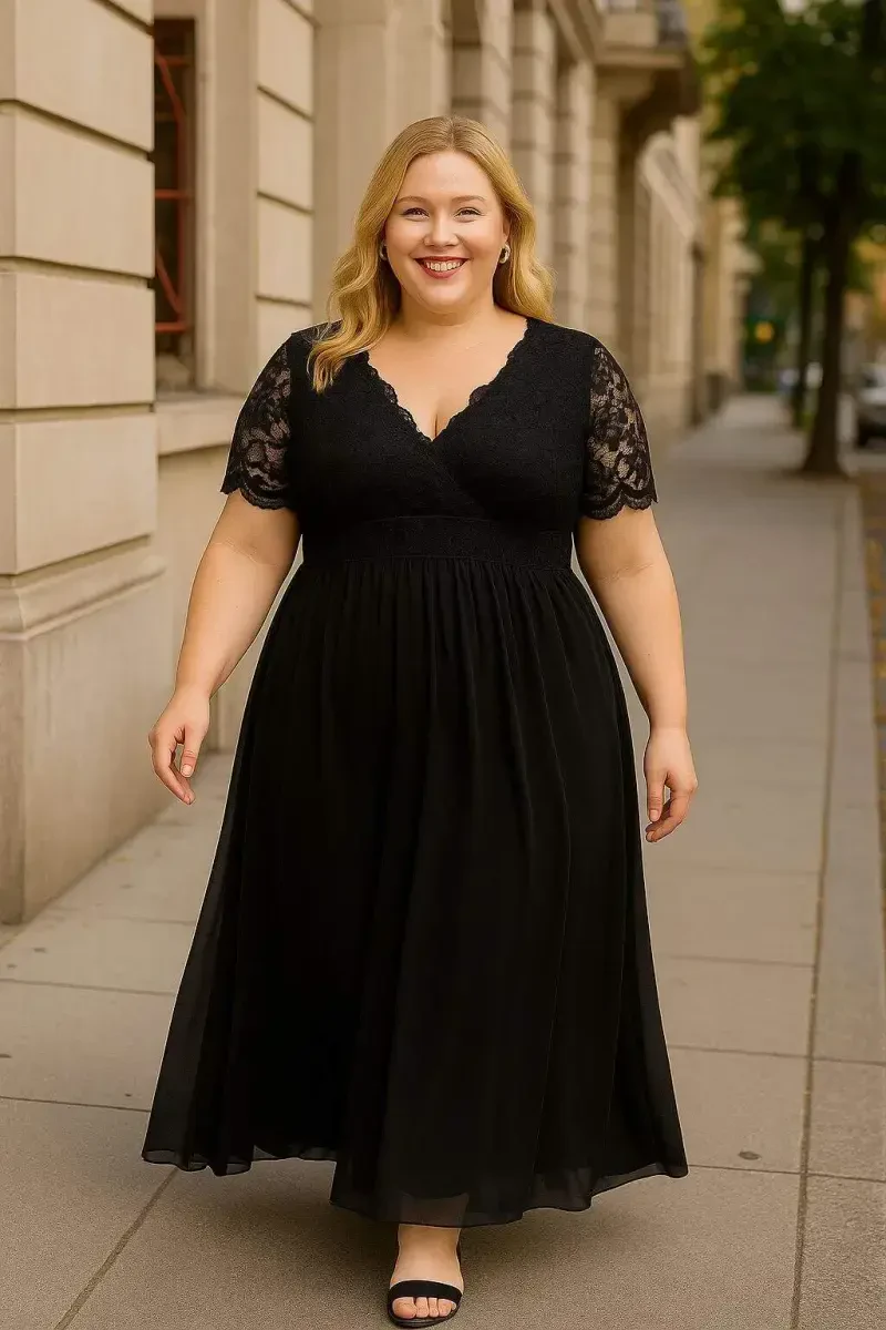 Qora shifonli yuqori sifonlu libosi bilan porlang